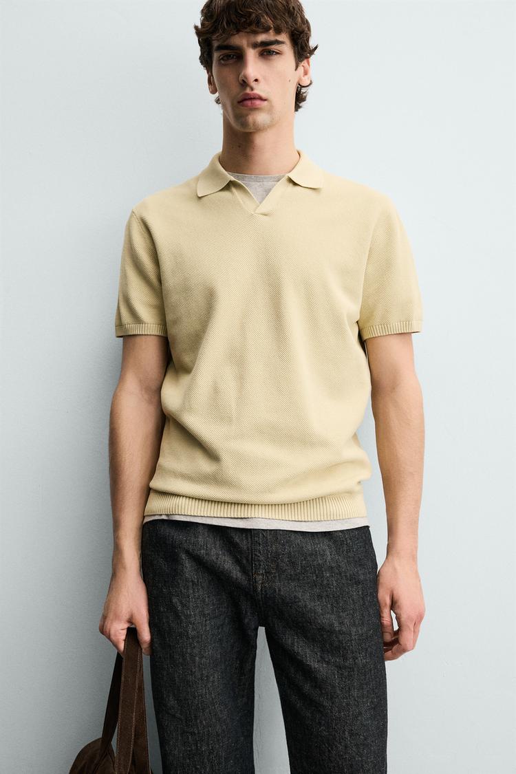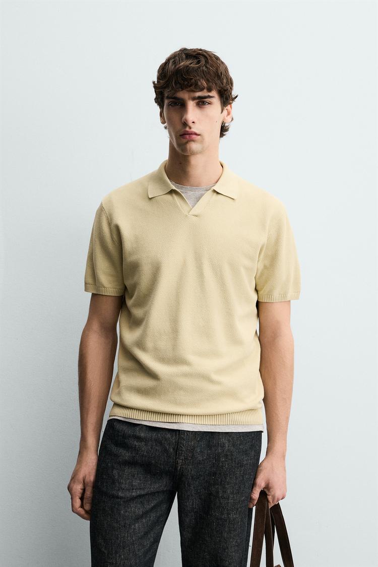 ZARA ПОЛО ИЗ РЕЛЬЕФНОГО ТРИКОТАЖА, ПАСТЕЛЬНО-ЖЕЛТЫЙ