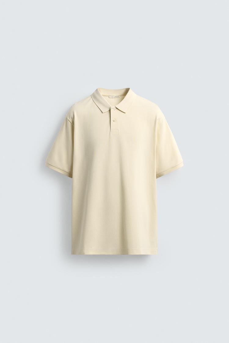 ZARA ПОЛО ИЗ РЕЛЬЕФНОЙ ТКАНИ ПИКЕ С ЭФФЕКТОМ ПОТЕРТОСТИ, ПАСТЕЛЬНО-ЖЕЛТЫЙ