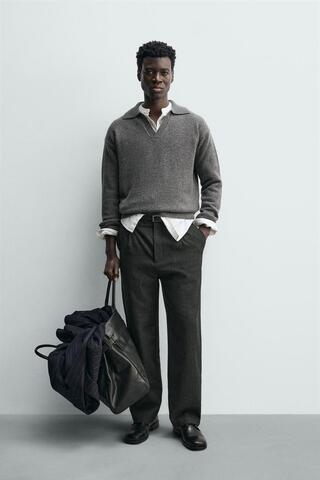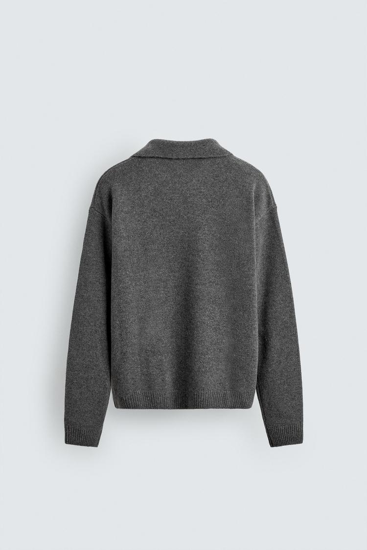 ZARA ПОЛО ИЗ ШЕРСТИ И КАШЕМИРА, СЕРЫЙ МЕЛАНЖ
