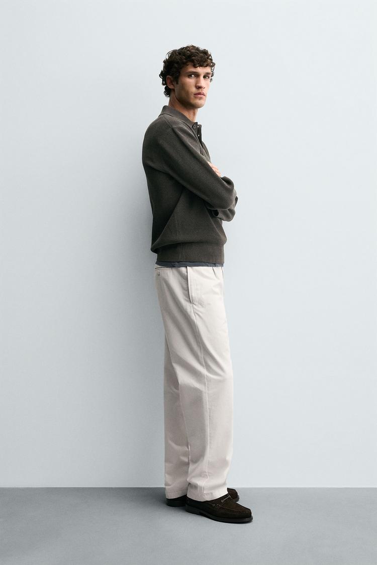 Поло классического кроя из пряжи с текстурой. Отложной воротник с застежкой на пуговицы спереди. Длинные рукава. Отделка в рубчик.