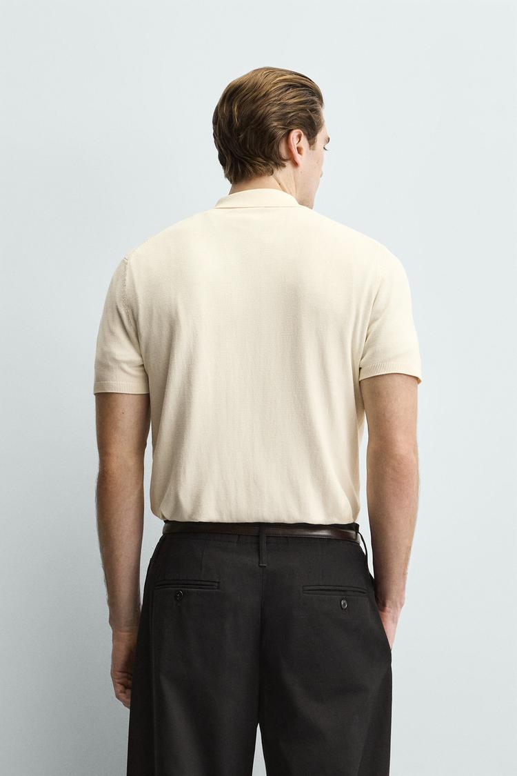 ZARA ПОЛО ИЗ ТРИКОТАЖА КЛАССИЧЕСКОГО КРОЯ, ЖЕЛТОВАТО-БЕЛЫЙ