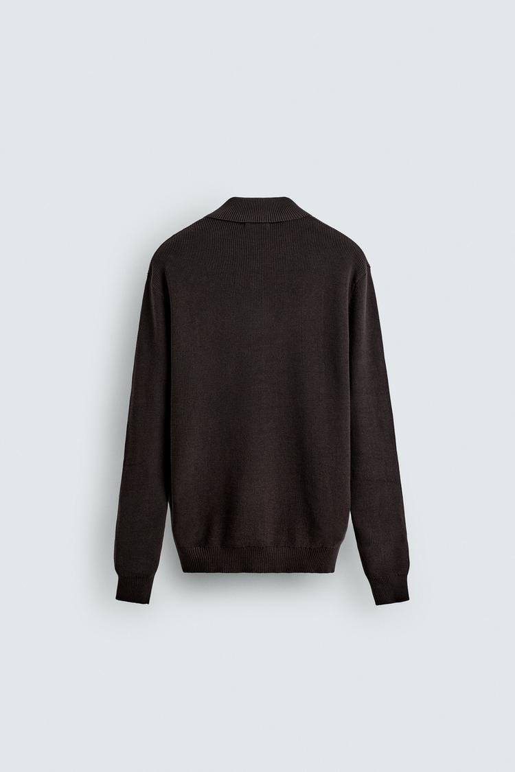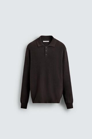 ZARA ПОЛО ИЗ ЖЕМЧУЖНОГО ТРИКОТАЖА, ШОКОЛАДНЫЙ