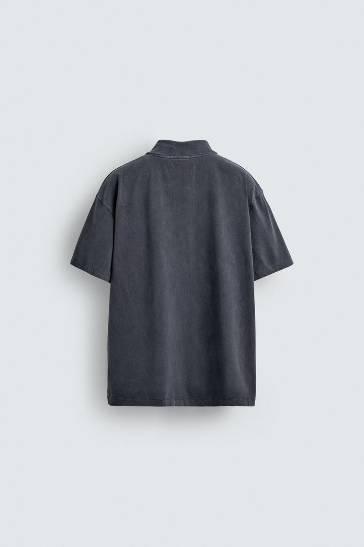 Поло классического кроя из хлопковой ткани. Отложной воротник с застежкой на пуговицы спереди. Короткие рукава. Эффект стирки.