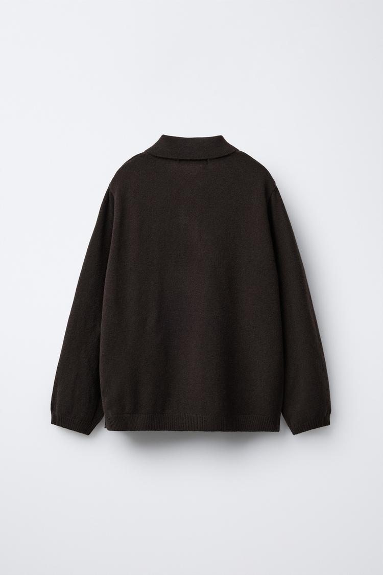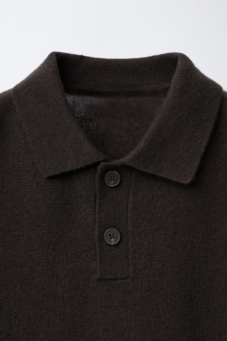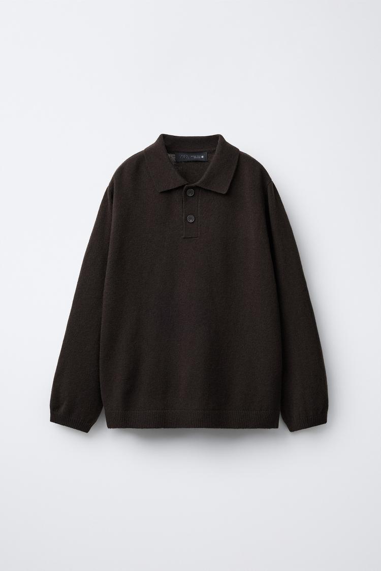 ZARA ПОЛО С ДЛИННЫМИ РУКАВАМИ С ВОРОТНИКОМ НА ПУГОВИЦАХ, ТЕМНО-КОРИЧНЕВЫЙ