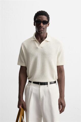 ZARA ПОЛО С ГЕОМЕТРИЧЕСКИМ УЗОРОМ, ЭКРЮ