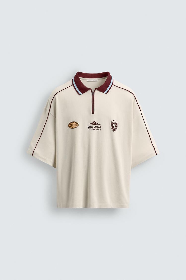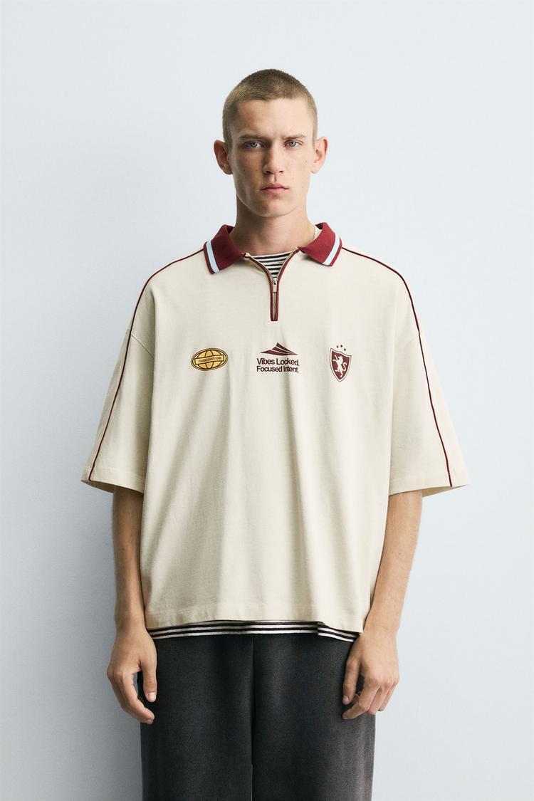 ZARA ПОЛО С ПРИНТОМ, ПЕСОЧНЫЙ