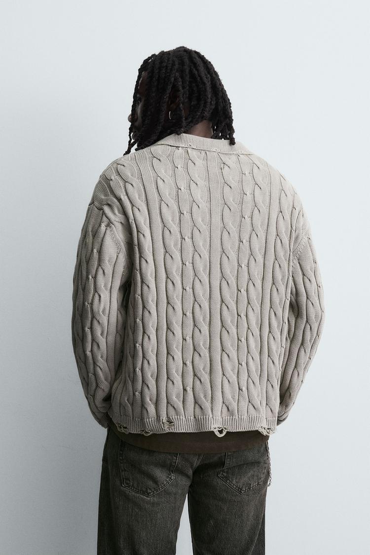 ZARA ПОЛО С ТЕКСТУРНЫМ УЗОРОМ «КОСЫ» И ЭФФЕКТОМ ПОТЕРТОСТИ, ЖЕМЧУЖНО-СЕРЫЙ