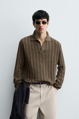 ZARA ПОЛО С УЗОРОМ «КОСЫ», РЫЖЕВАТО-КОРИЧНЕВЫЙ