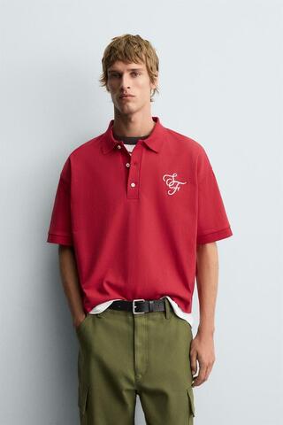 ZARA ПОЛО С ВЫШИВКОЙ, КРАСНЫЙ