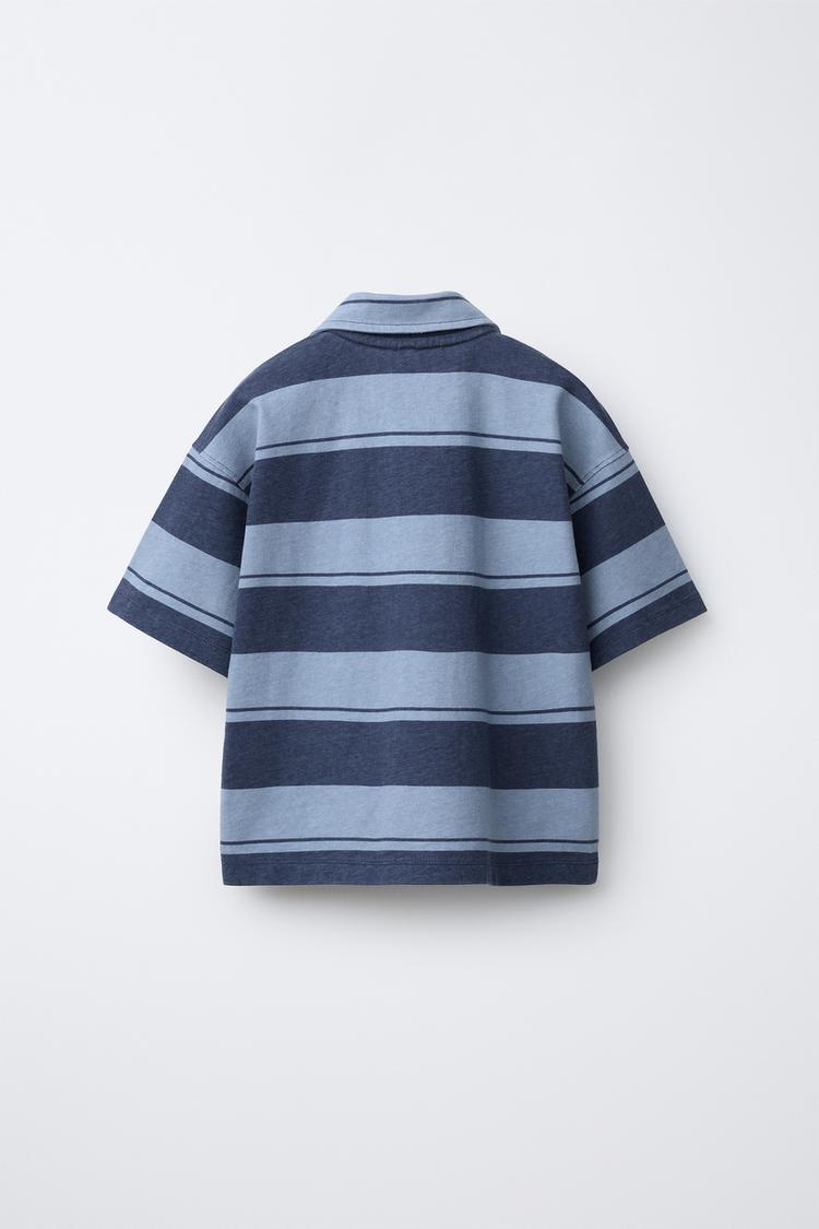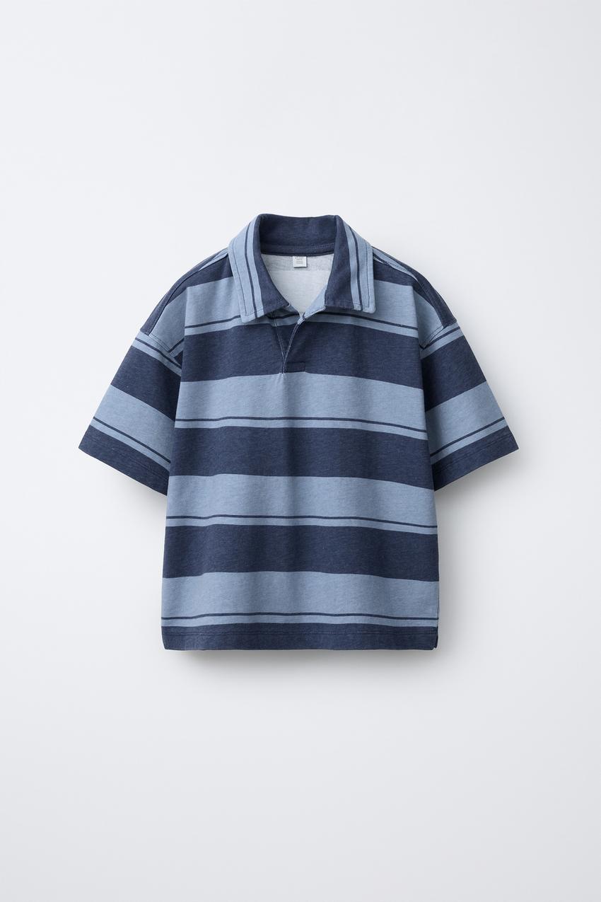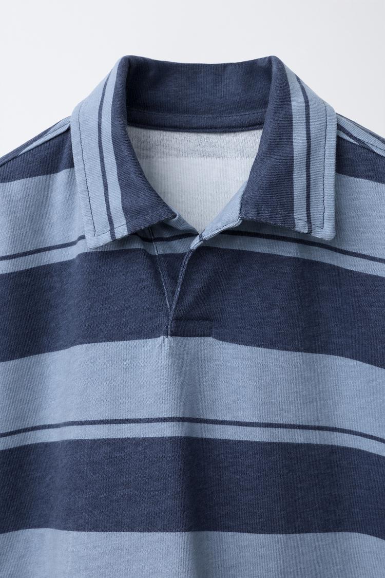 ZARA ПОЛО В ПОЛОСКУ ИЗ ФУТЕРА, СИНИЙ
