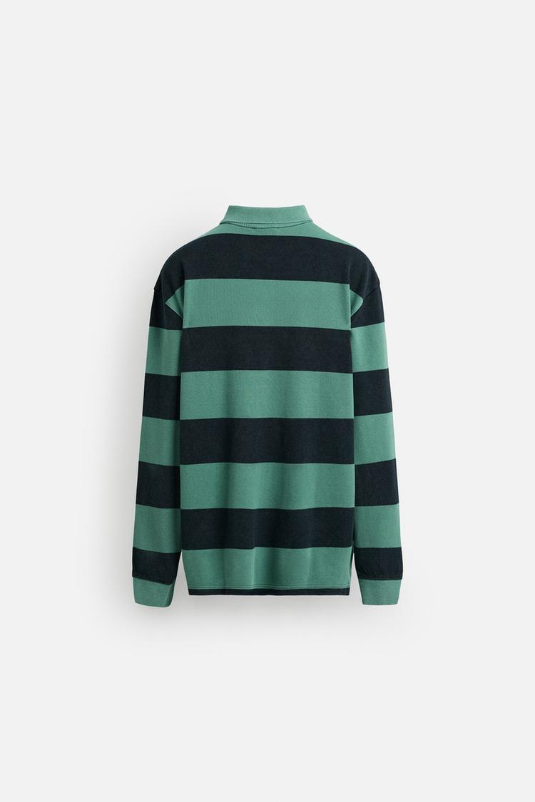 ZARA ПОЛО В ПОЛОСКУ, ЗЕЛЕНОВАТО-СИНИЙ