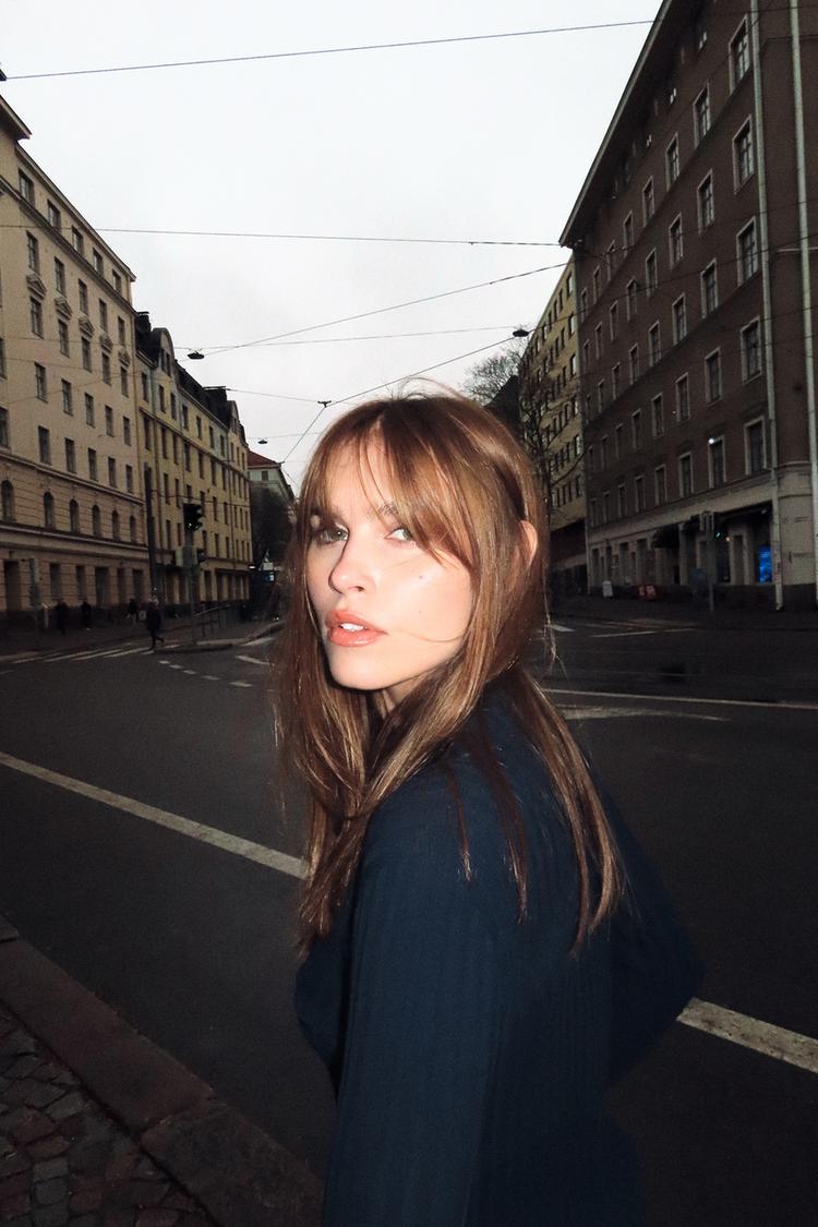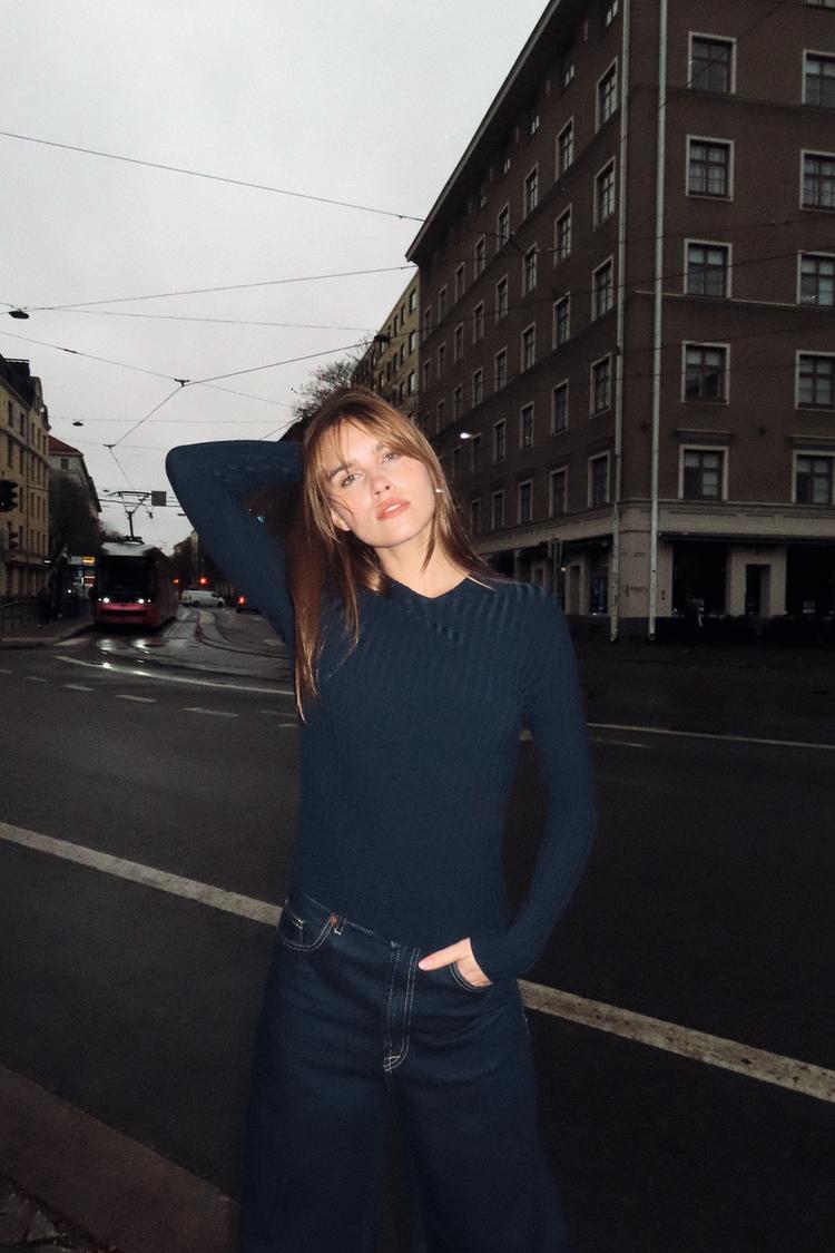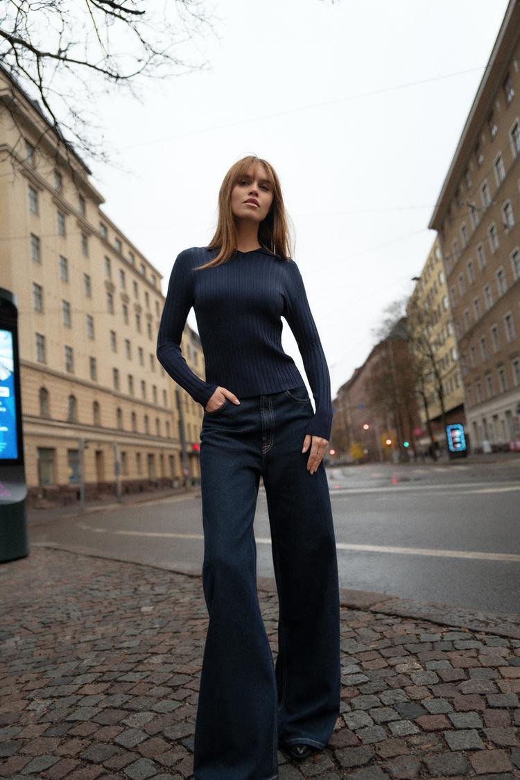 Приталенный джемпер с воротником поло и длинными рукавами.