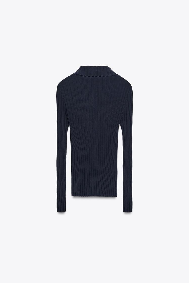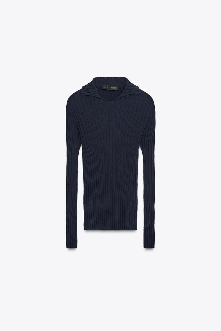 ZARA ДЖЕМПЕР С ВОРОТНИКОМ ПОЛО В РУБЧИК, МОРСКОЙ СИНИЙ