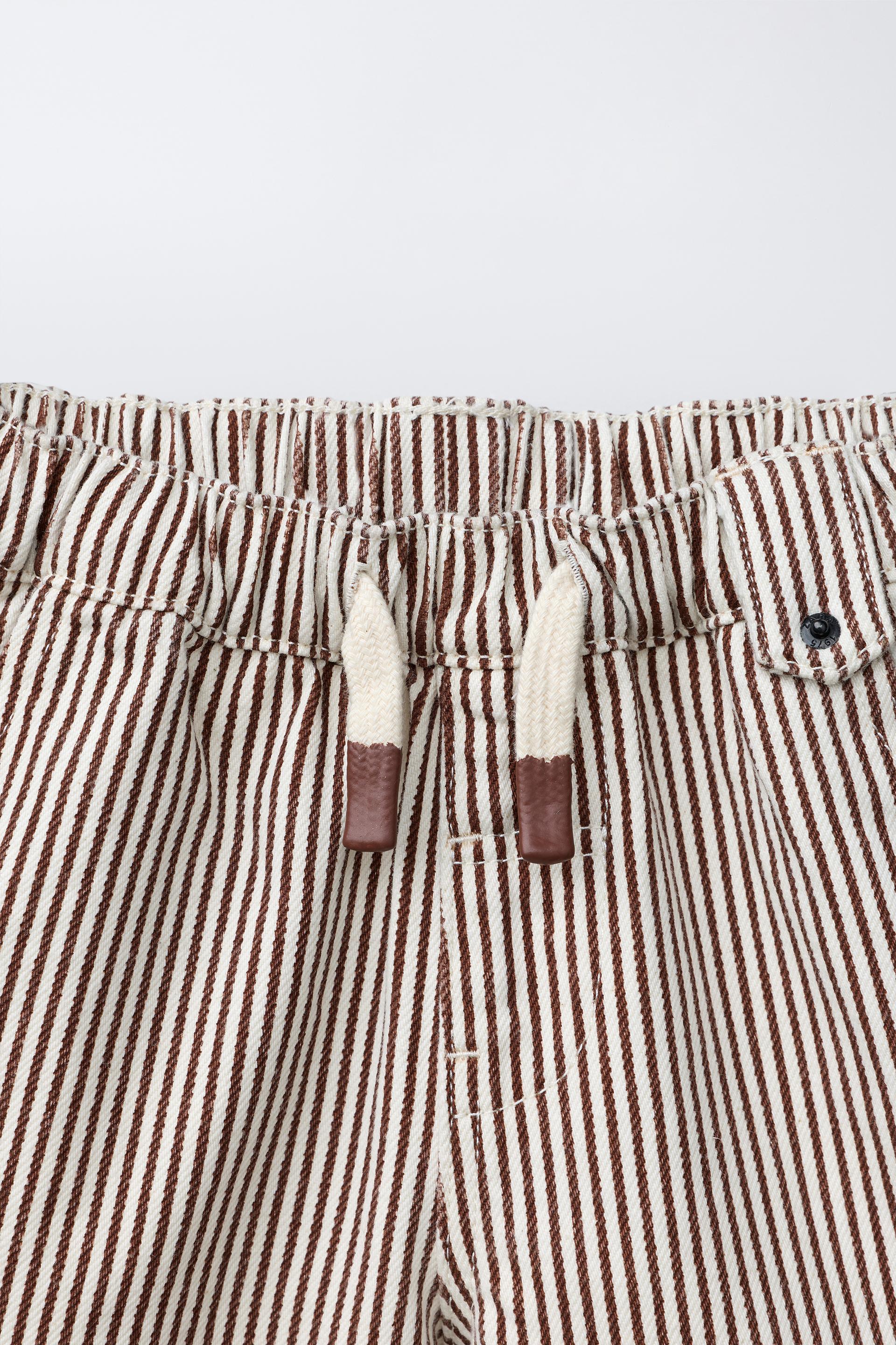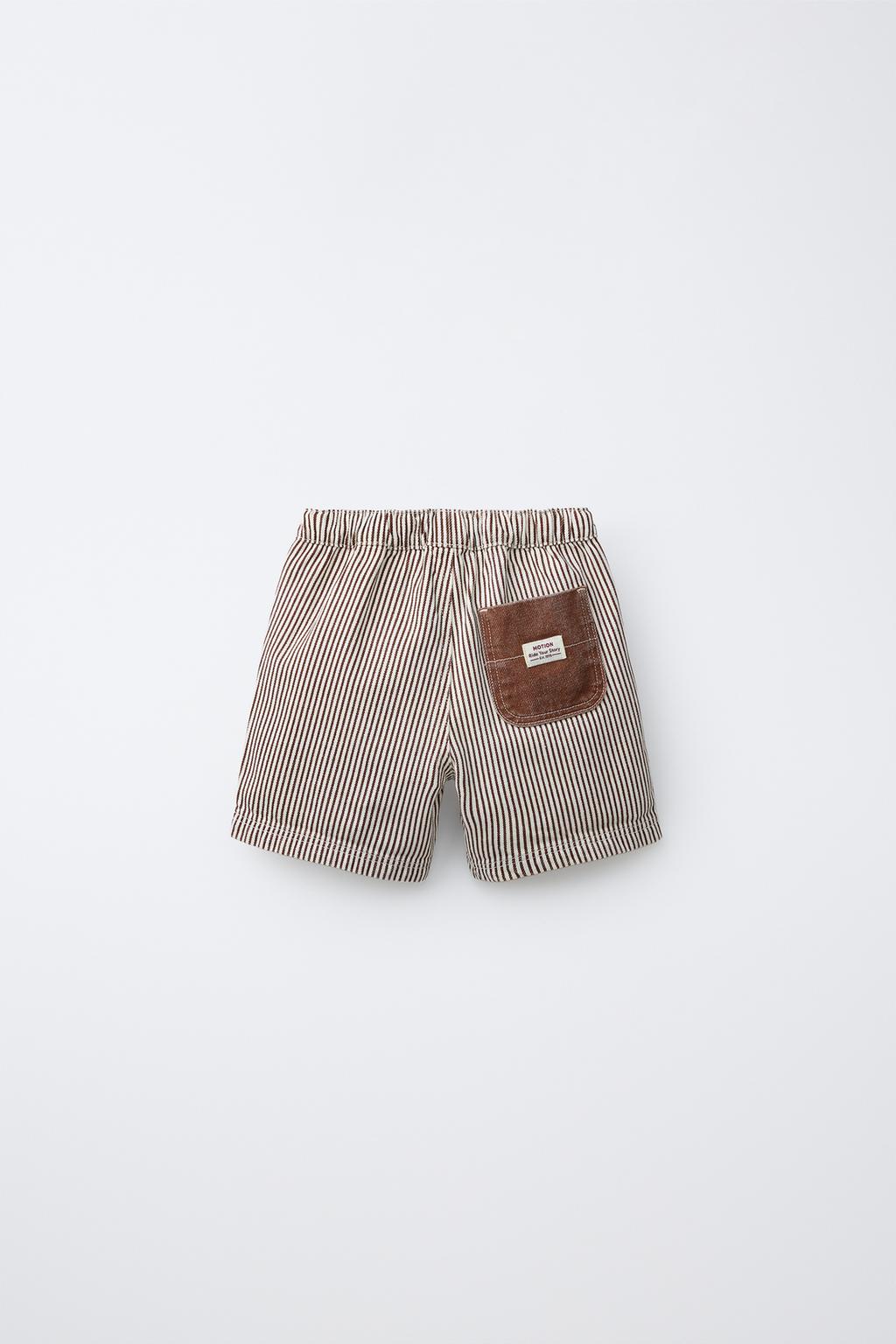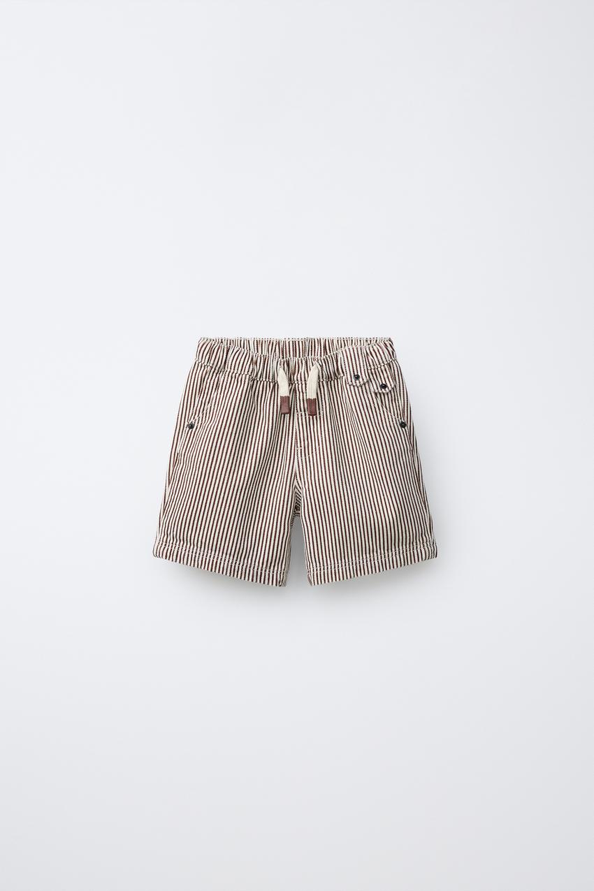 ZARA ПОЛОСАТЫЕ ШОРТЫ-БЕРМУДЫ ИЗ САРЖИ, ЭКРЮ