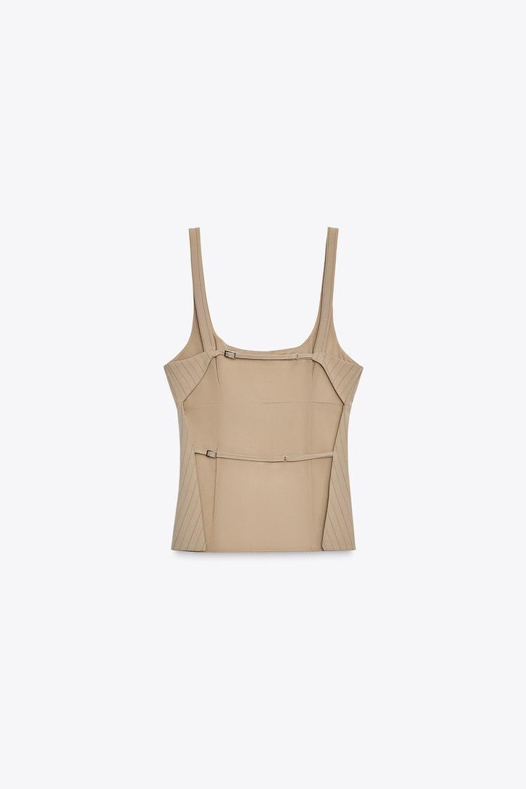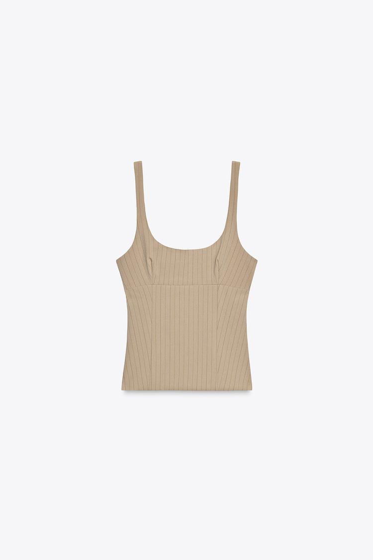 ZARA ПОЛОСАТЫЙ ТОП С ОТКРЫТОЙ СПИНОЙ, РЫЖЕВАТО-КОРИЧНЕВЫЙ