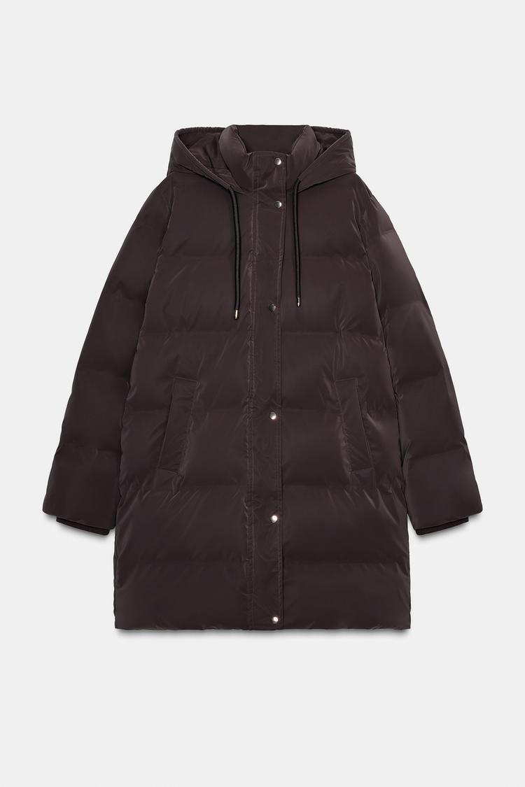 ZARA ПОЛУДЛИННЫЙ ВЕТРОЗАЩИТНЫЙ АНОРАК ИЗ ПРОРЕЗИНЕННОЙ ТКАНИ, КОРИЧНЕВЫЙ
