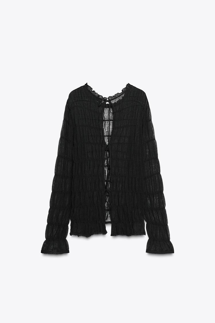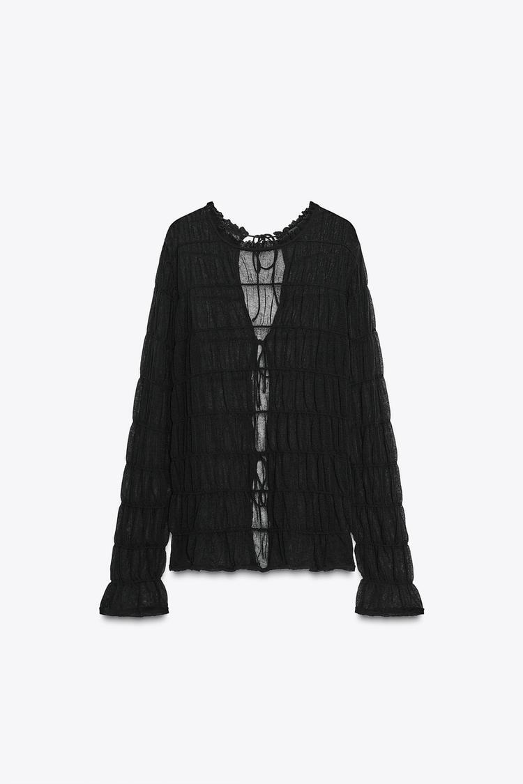 ZARA ПОЛУПРОЗРАЧНАЯ БЛУЗКА СО СБОРКАМИ, ЧЕРНЫЙ