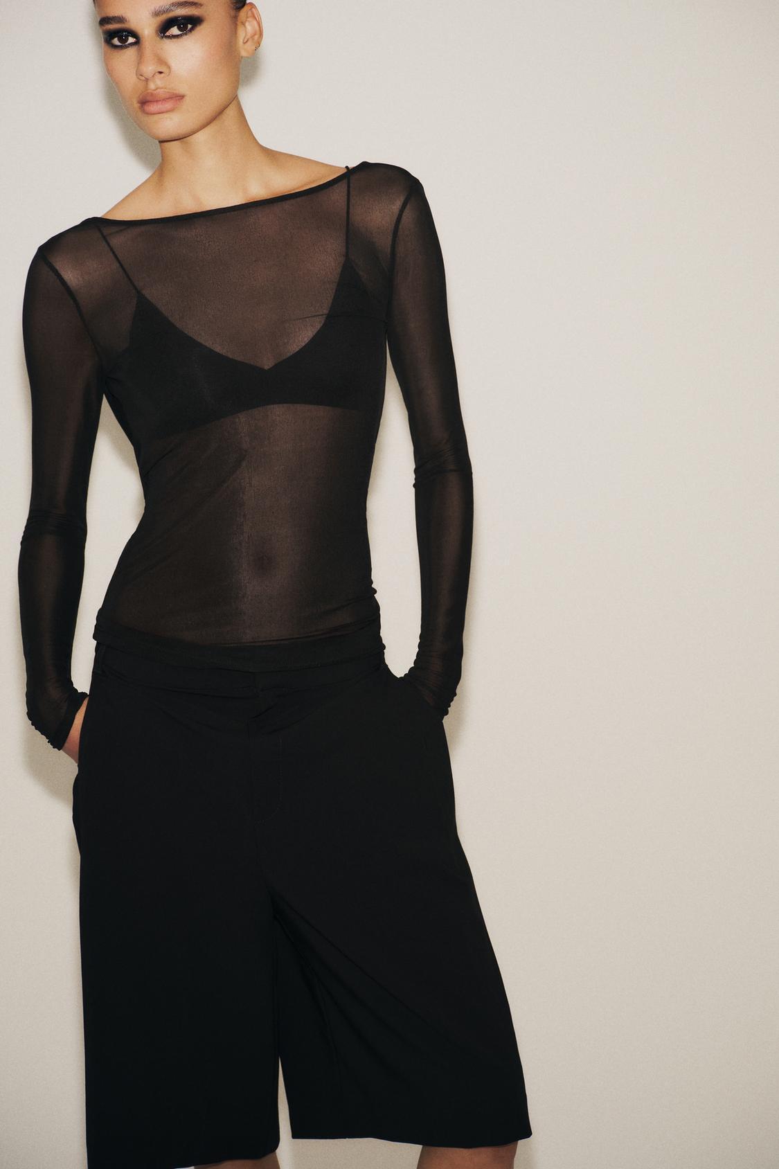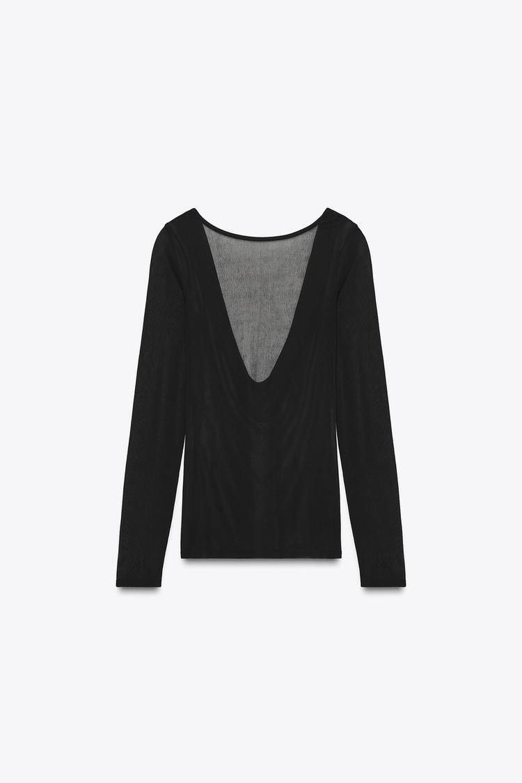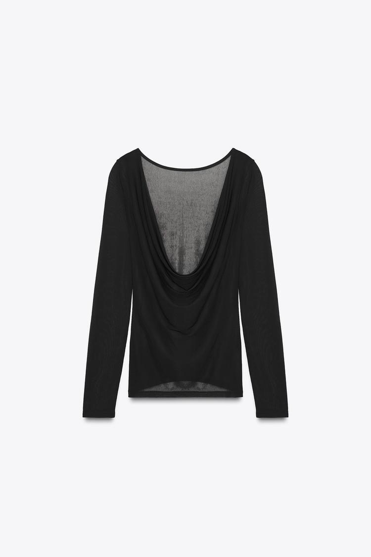 ZARA ПОЛУПРОЗРАЧНАЯ ФУТБОЛКА С ДРАПИРОВКОЙ НА СПИНЕ, ЧЕРНЫЙ