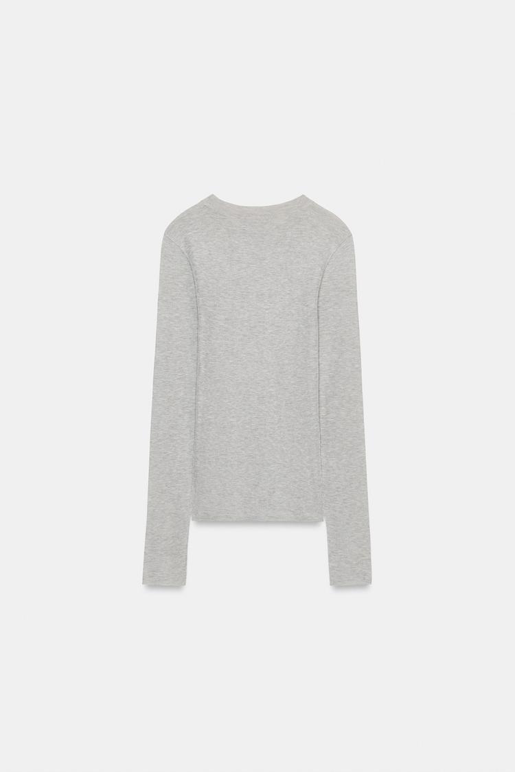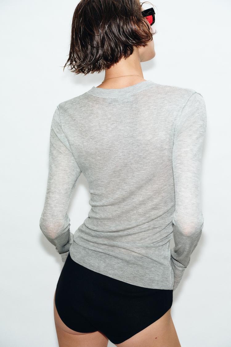 ZARA ПОЛУПРОЗРАЧНЫЙ ТРИКОТАЖНЫЙ ТОП, СЕРЫЙ МЕЛАНЖ