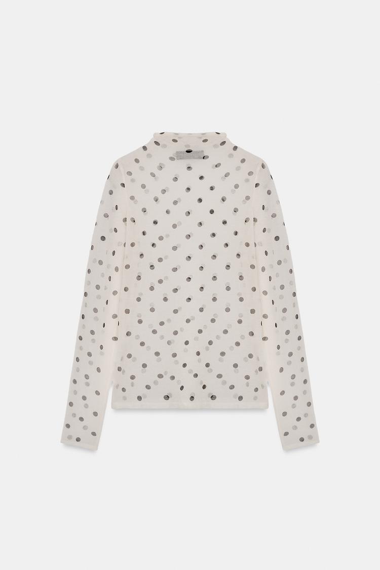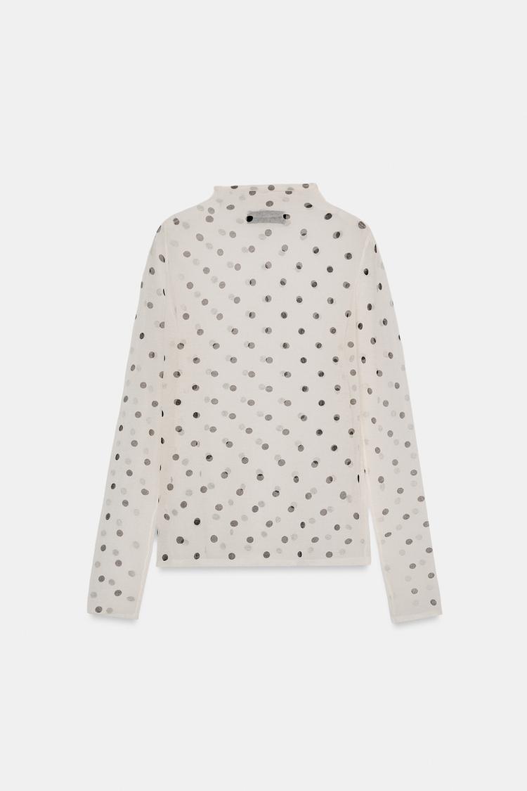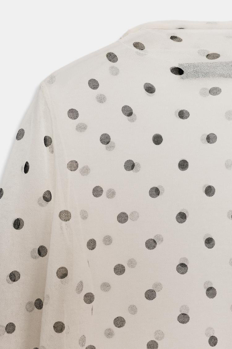 ZARA ПОЛУПРОЗРАЧНЫЙ ТРИКОТАЖНЫЙ ТОП В ГОРОШЕК, БЕЛЫЙ/ЧЕРНЫЙ