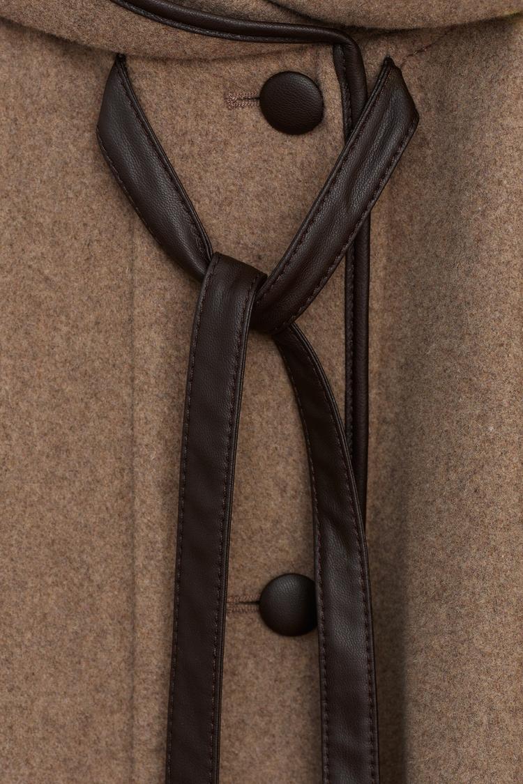Пончо из 31% шерстяной пряжи. Круглый воротник с капюшоном. Передние карманы. Контрастная отделка в виде резинки. Простой подол. Передняя пуговица.