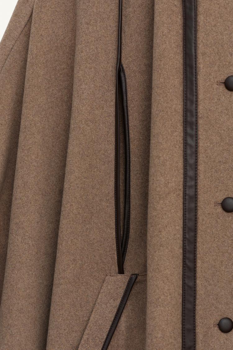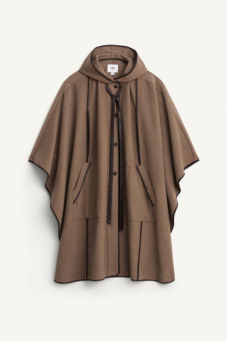 ZARA ПОНЧО ИЗ СМЕСОВОЙ ШЕРСТИ, КАМЕННЫЙ