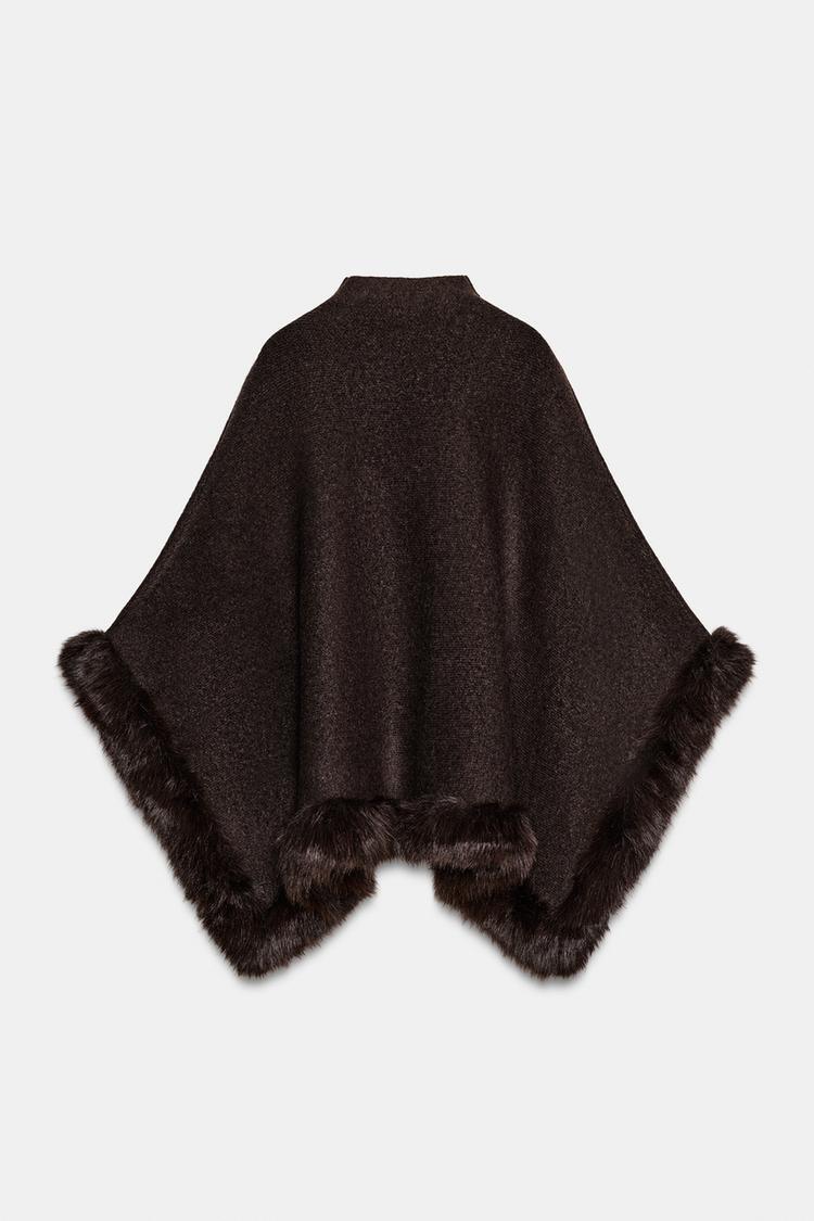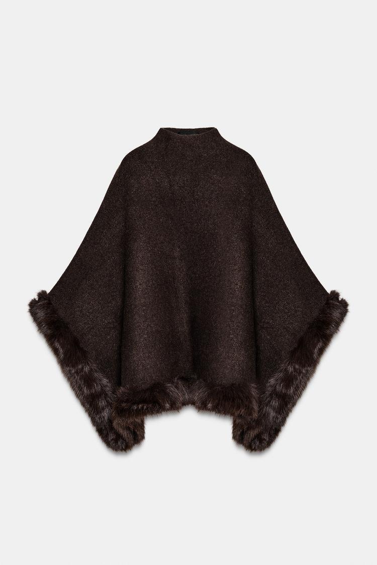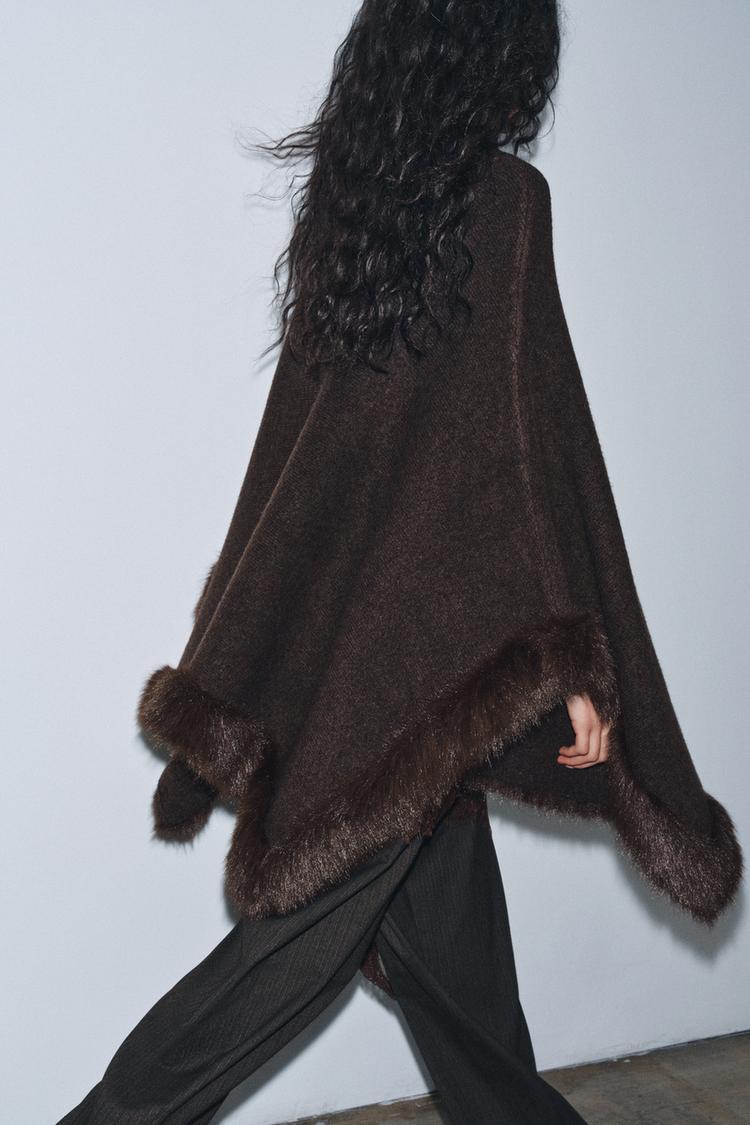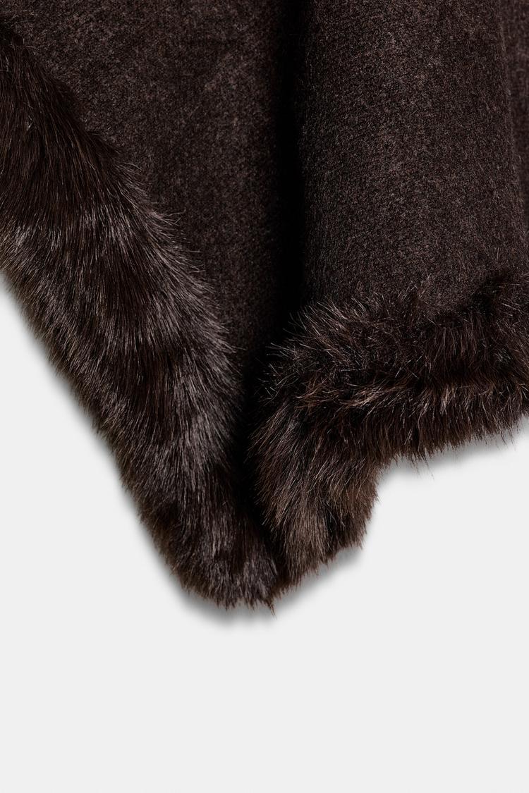 ZARA ПОНЧО-НАКИДКА ИЗ ИСКУССТВЕННОГО МЕХА, ТЕМНО СЕРО-КОРИЧНЕВЫЙ