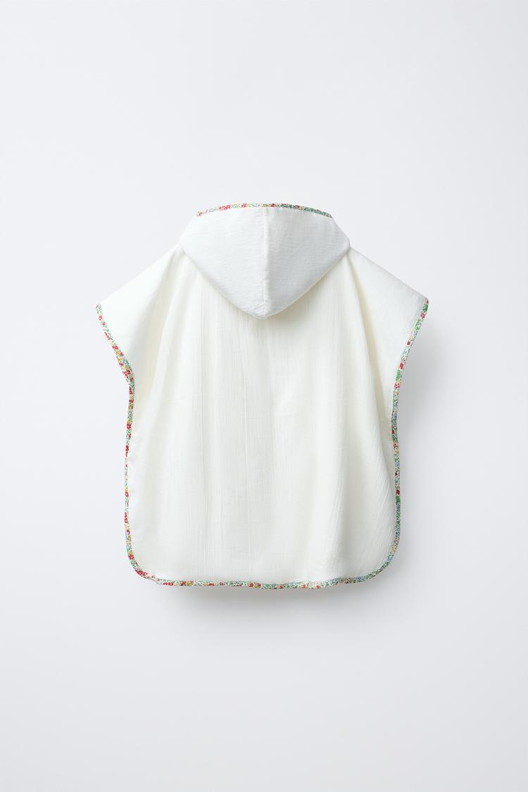 Пончо-полотенце с капюшоном. Вышитый инициал на груди и отделка с цветочным принтом.