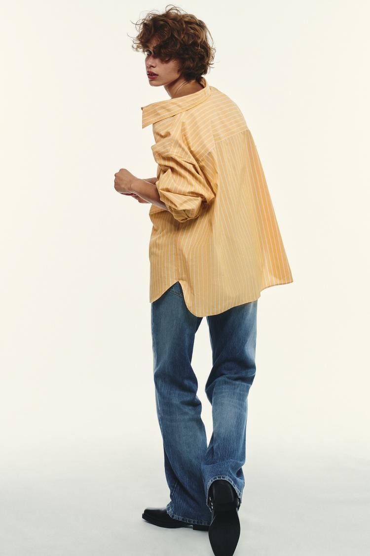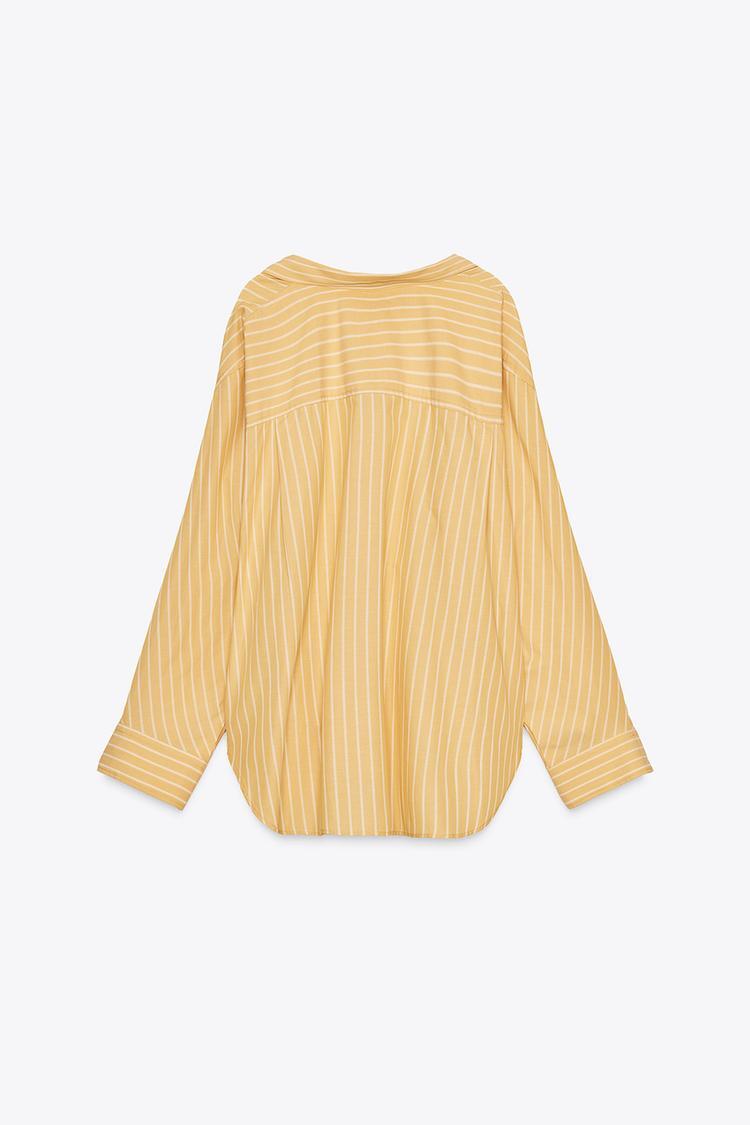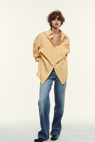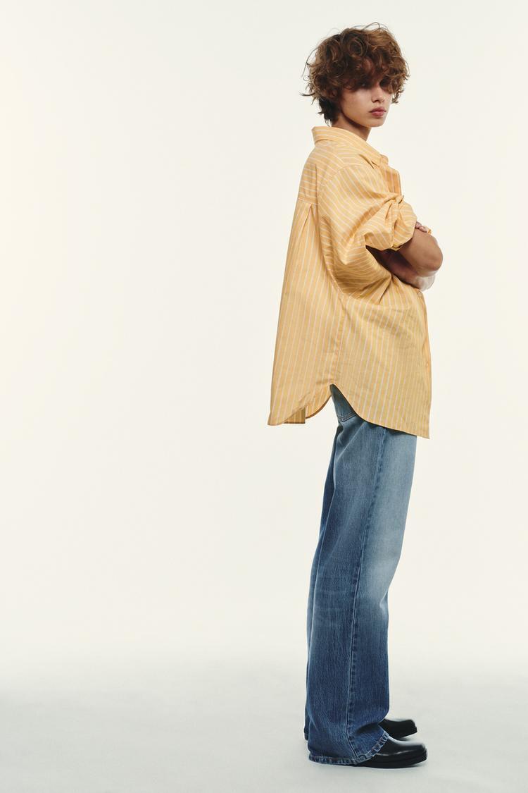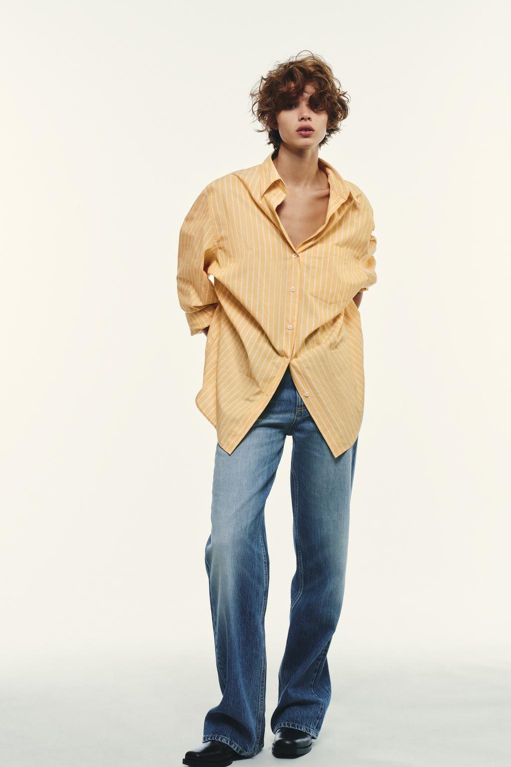ZARA ПОПЛИНОВАЯ РУБАШКА ОВЕРСАЙЗ В ПОЛОСКУ, ГОРЧИЧНЫЙ