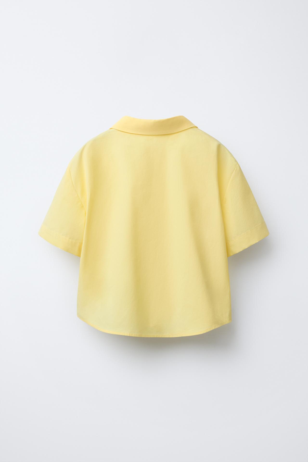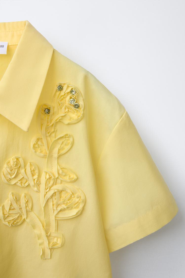 ZARA ПОПЛИНОВАЯ РУБАШКА РАСШИТАЯ СТРАЗАМИ, ПАСТЕЛЬНО-ЖЕЛТЫЙ