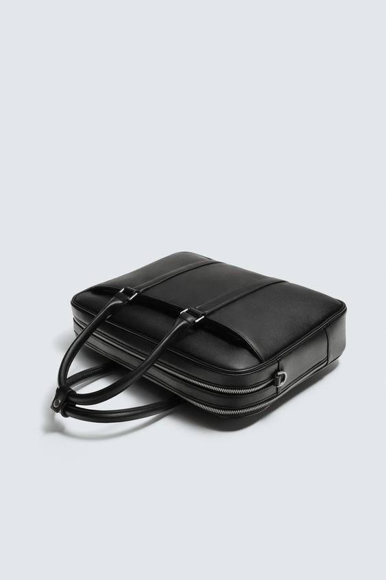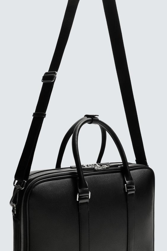 ZARA ПОРТФЕЛЬ ИЗ РЕЛЬЕФНОГО МАТЕРИАЛА, ЧЕРНЫЙ