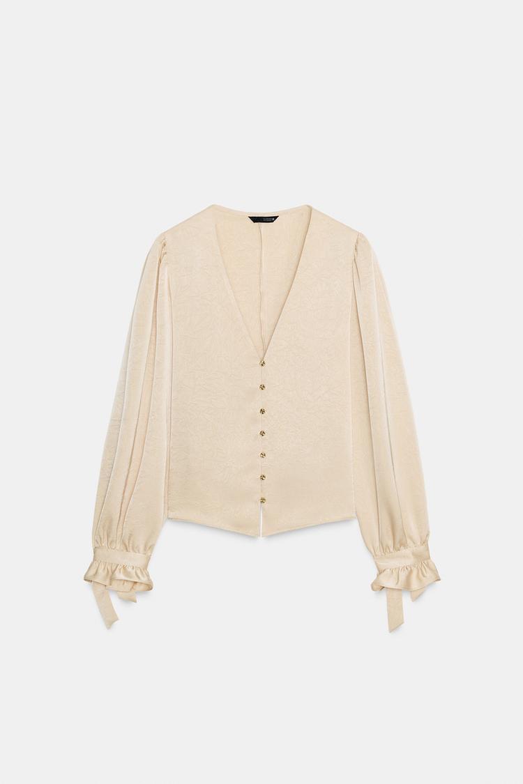 ZARA ПРИТАЛЕННАЯ БЛУЗКА ИЗ ЖАТОЙ ТКАНИ, ЭКРЮ