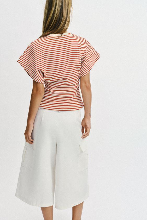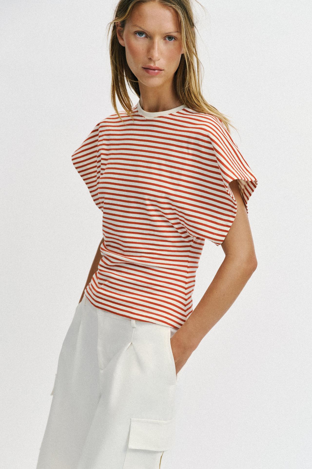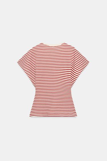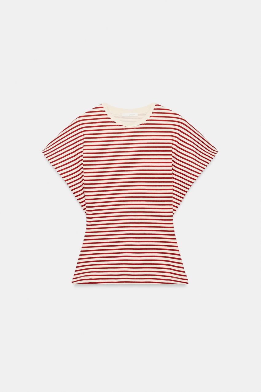 ZARA ПРИТАЛЕННАЯ ФУТБОЛКА В ПОЛОСКУ, КРАСНАЯ ПОЛОСА