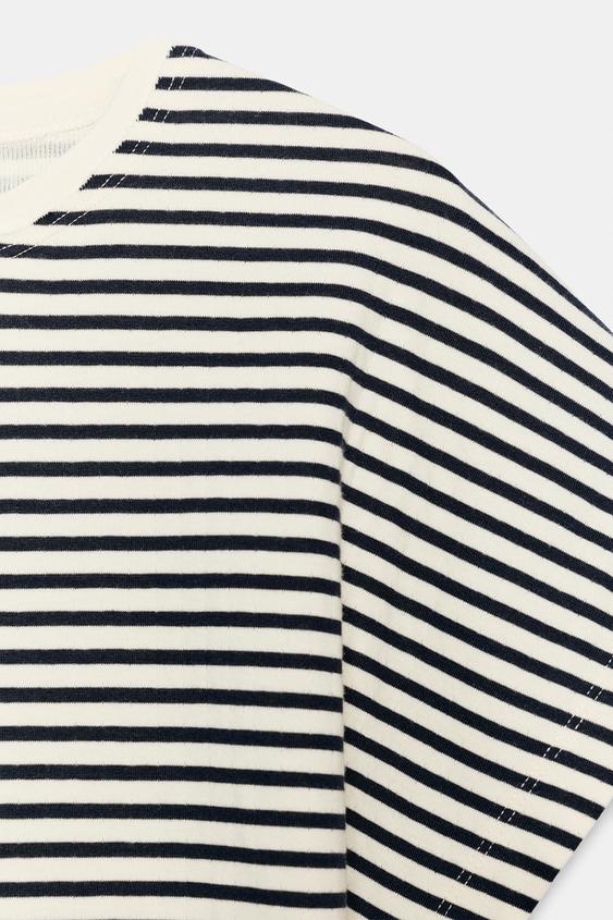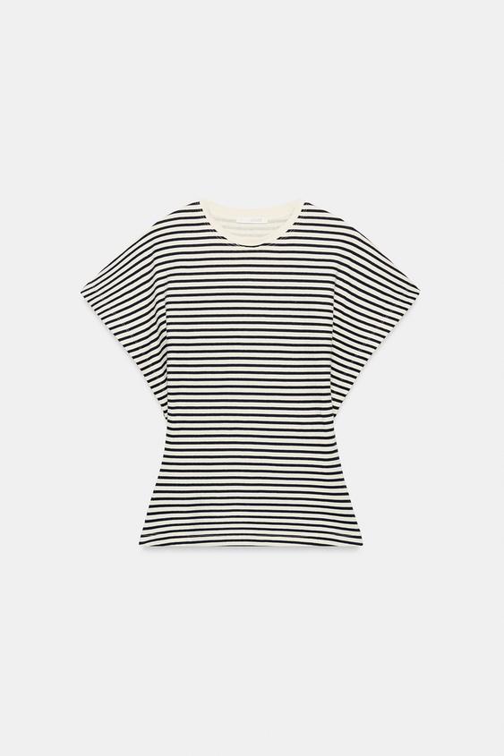 ZARA ПРИТАЛЕННАЯ ФУТБОЛКА В ПОЛОСКУ, ПОЛОСКИ