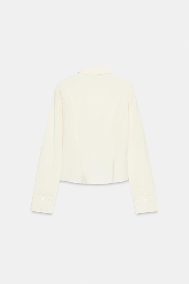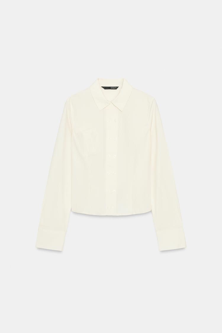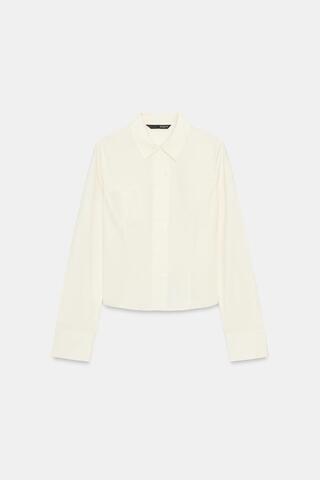 ZARA ПРИТАЛЕННАЯ РУБАШКА ИЗ ПОПЛИНА, КРЕМОВЫЙ