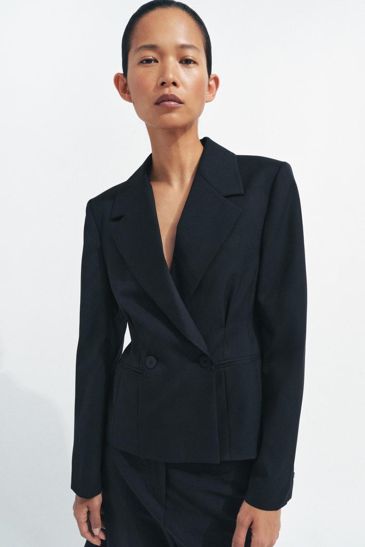ZARA ПРИТАЛЕННЫЙ БЛЕЙЗЕР ИЗ СМЕСОВОЙ ШЕРСТИ — ZW COLLECTION, ЧЕРНЫЙ