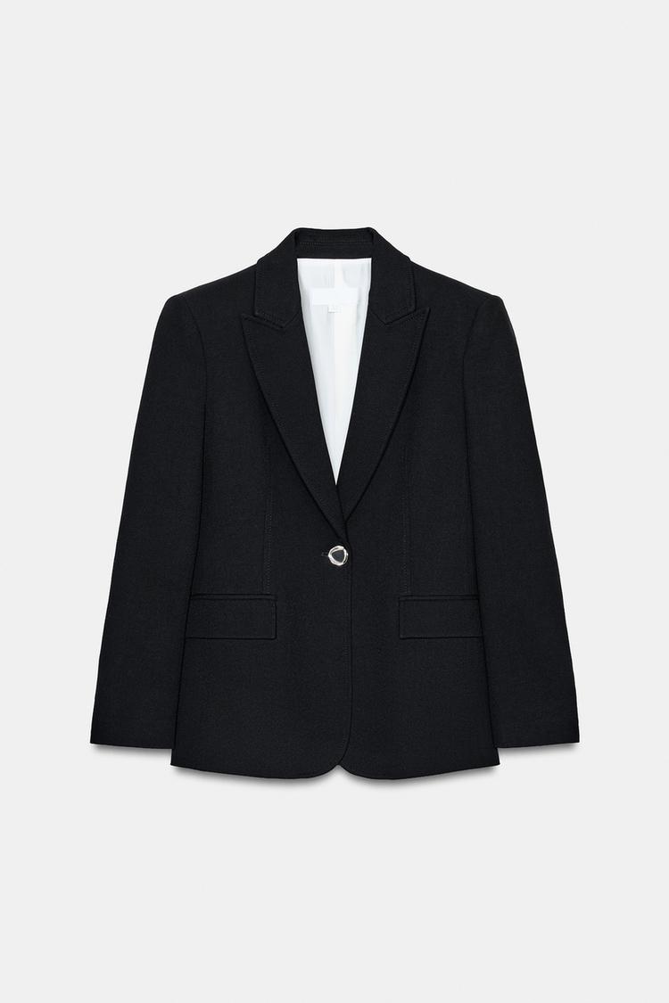 ZARA ПРИТАЛЕННЫЙ БЛЕЙЗЕР С ПОДПЛЕЧНИКАМИ, ЧЕРНЫЙ