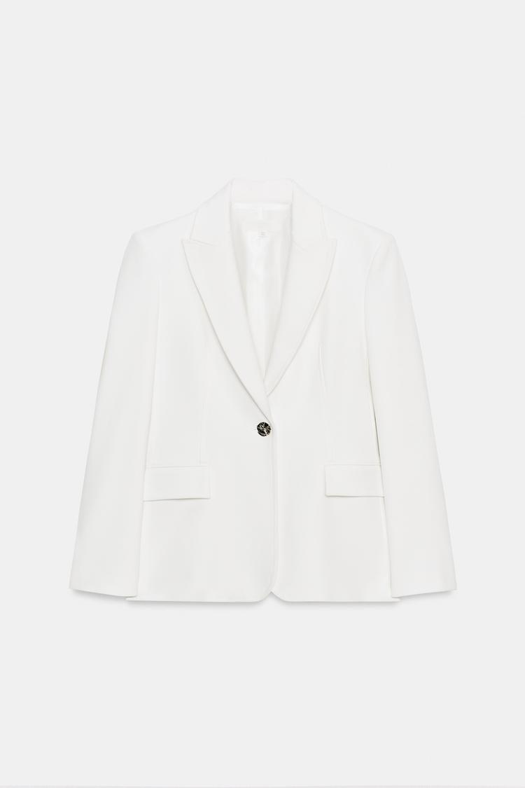 ZARA ПРИТАЛЕННЫЙ БЛЕЙЗЕР С ПОДПЛЕЧНИКАМИ, ЖЕЛТОВАТО-БЕЛЫЙ