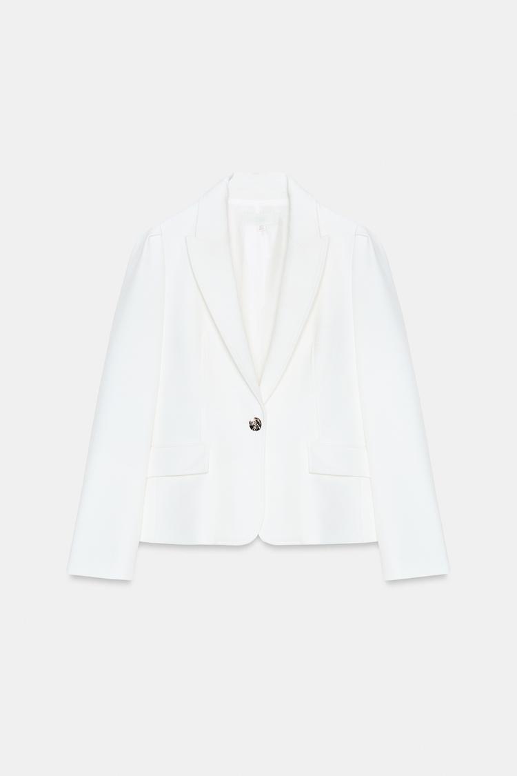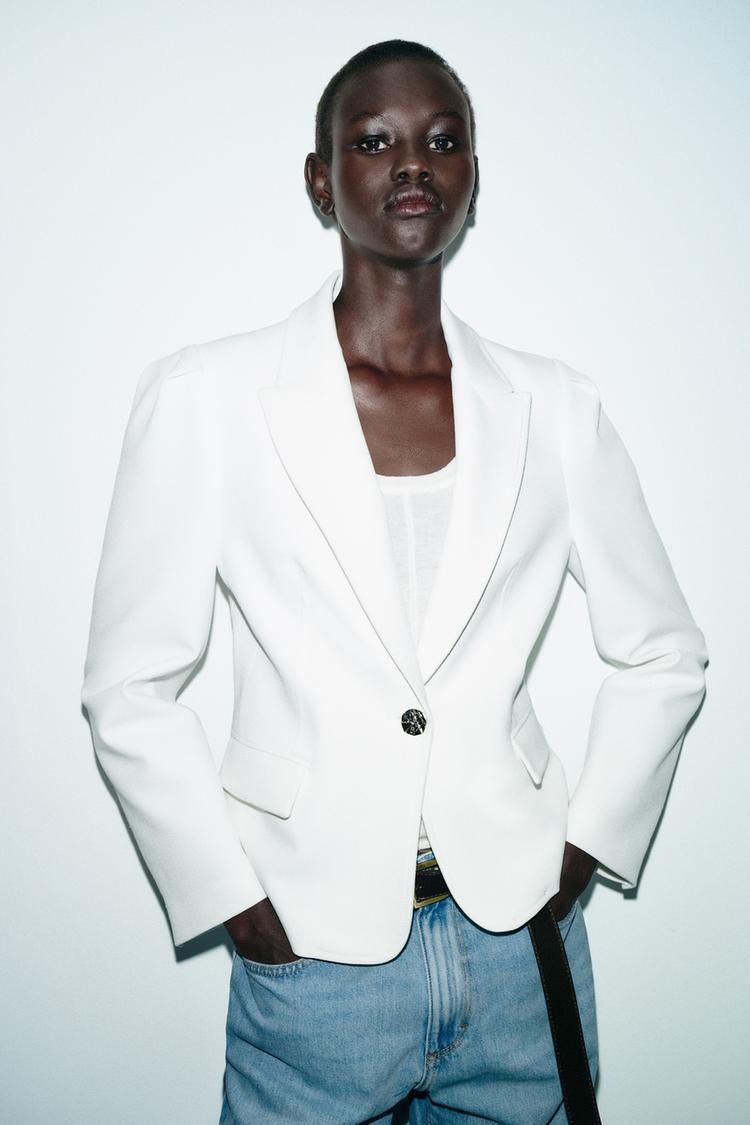 ZARA ПРИТАЛЕННЫЙ БЛЕЙЗЕР С ВЫРАЖЕННЫМИ ПЛЕЧАМИ, ЖЕЛТОВАТО-БЕЛЫЙ