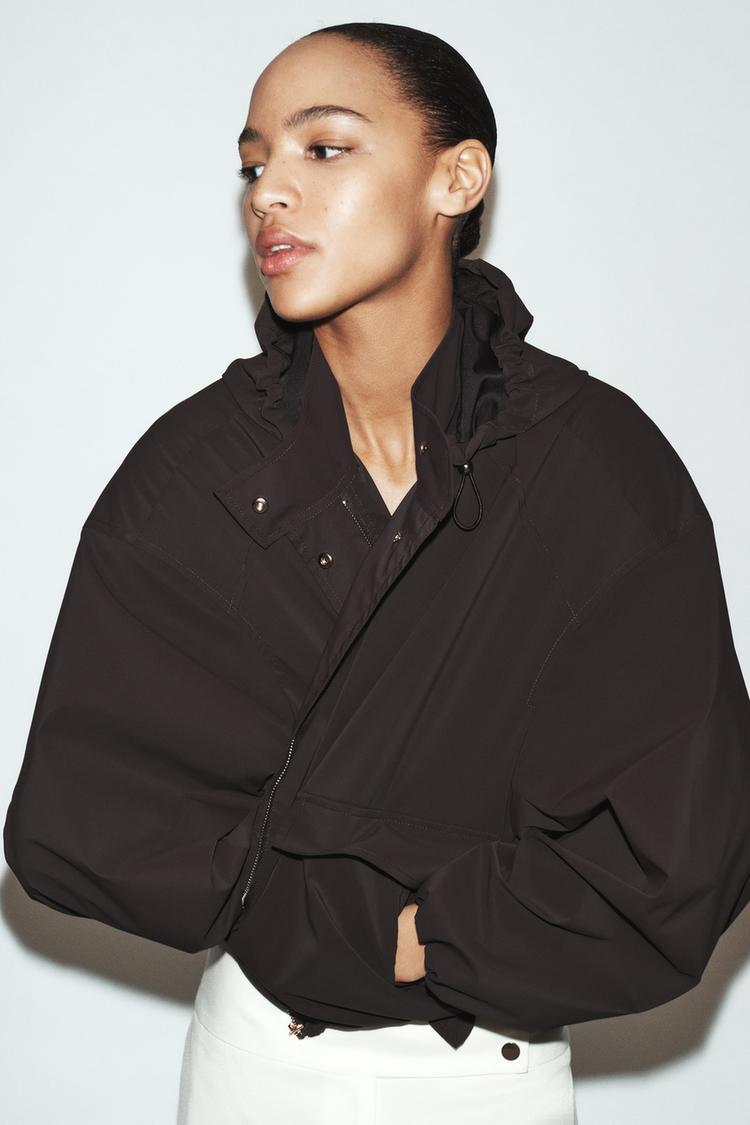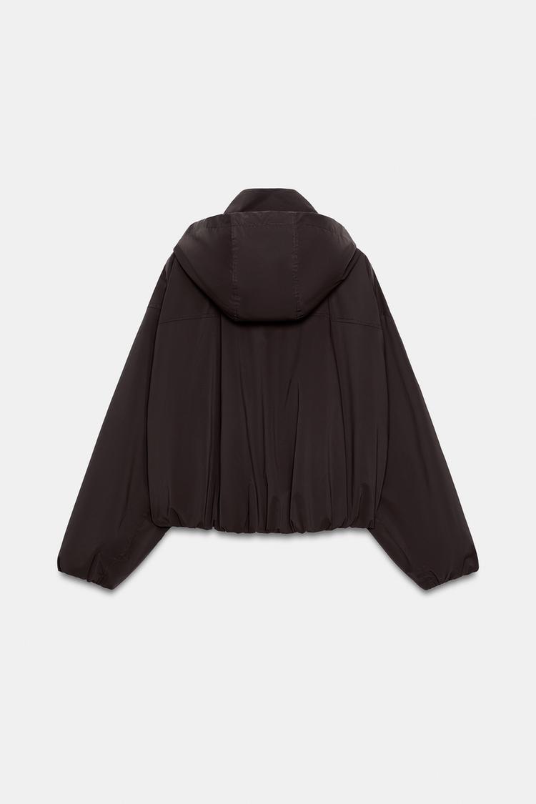 ZARA ПРОРЕЗИНЕННАЯ КУРТКА С КАПЮШОНОМ, КОРИЧНЕВЫЙ