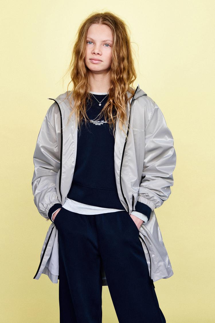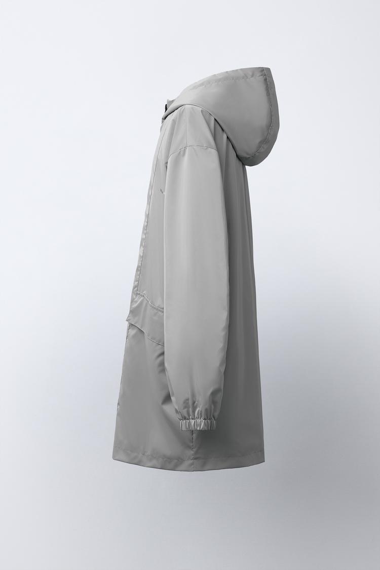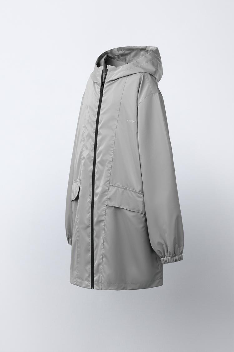 ZARA ПРОРЕЗИНЕННАЯ КУРТКА С КАПЮШОНОМ WATER REPELLENT, СЕРЕБРИТСЫЙ