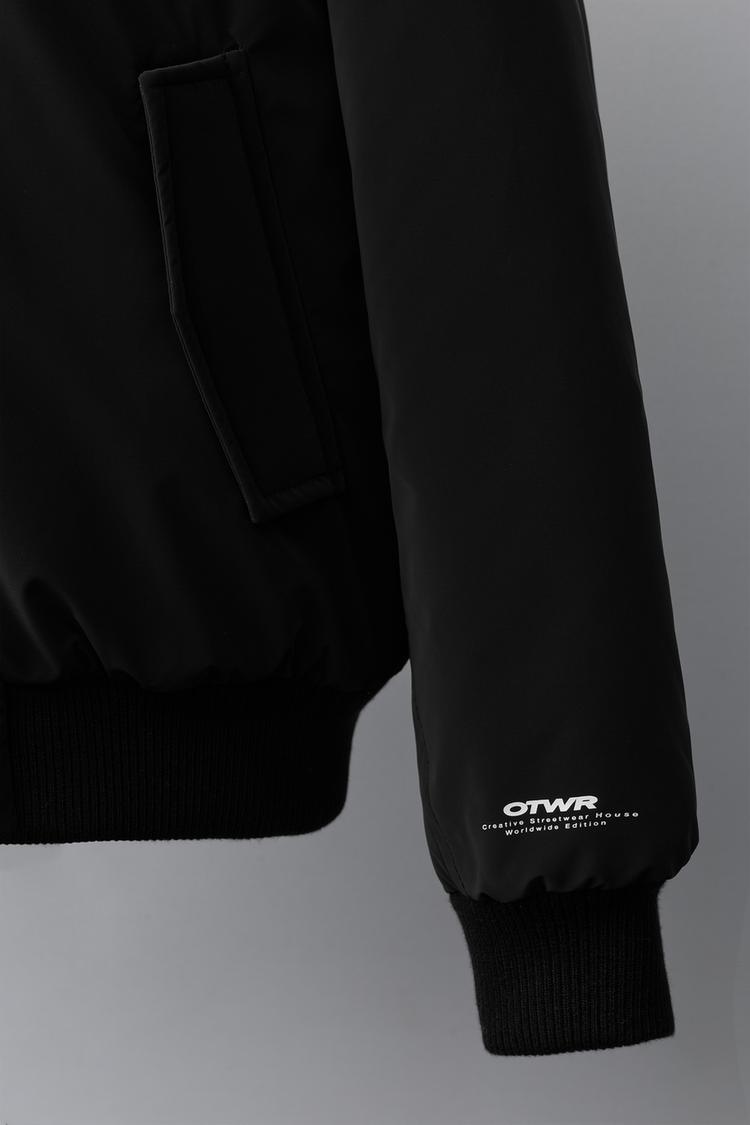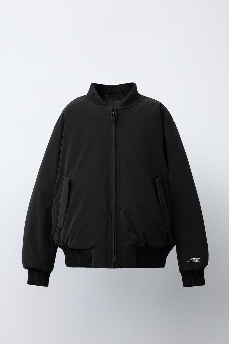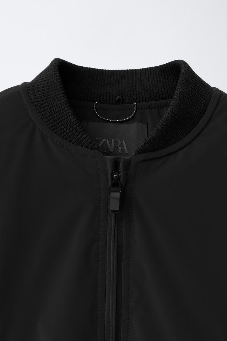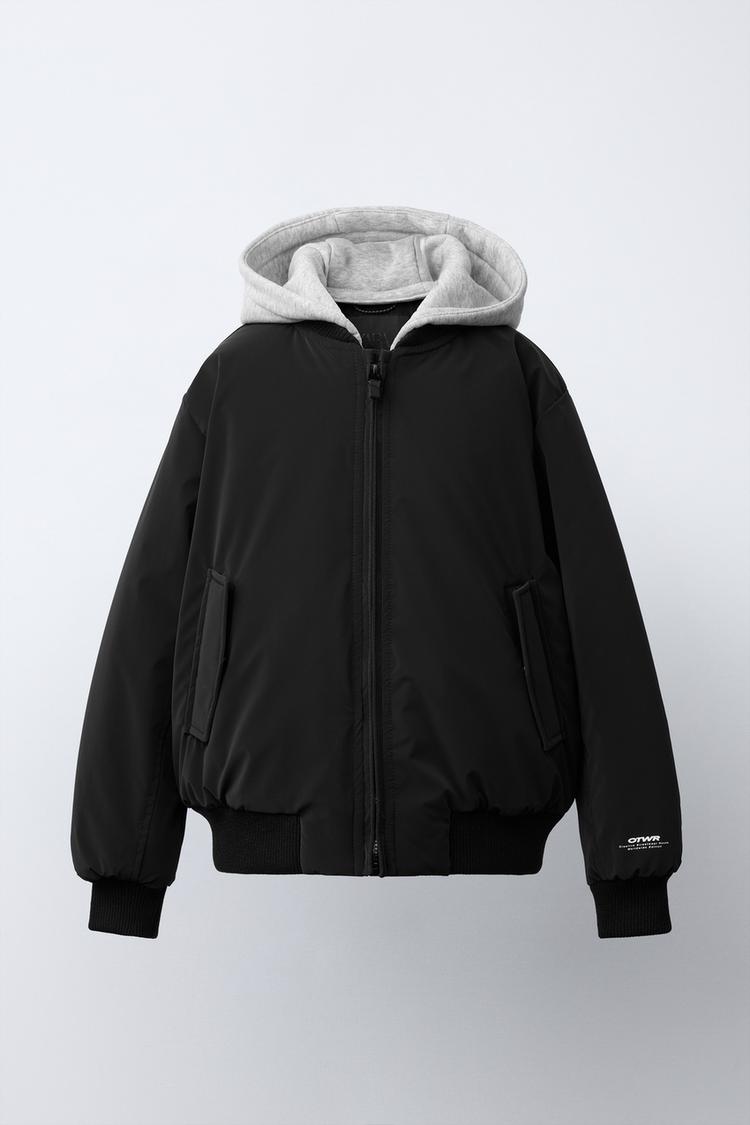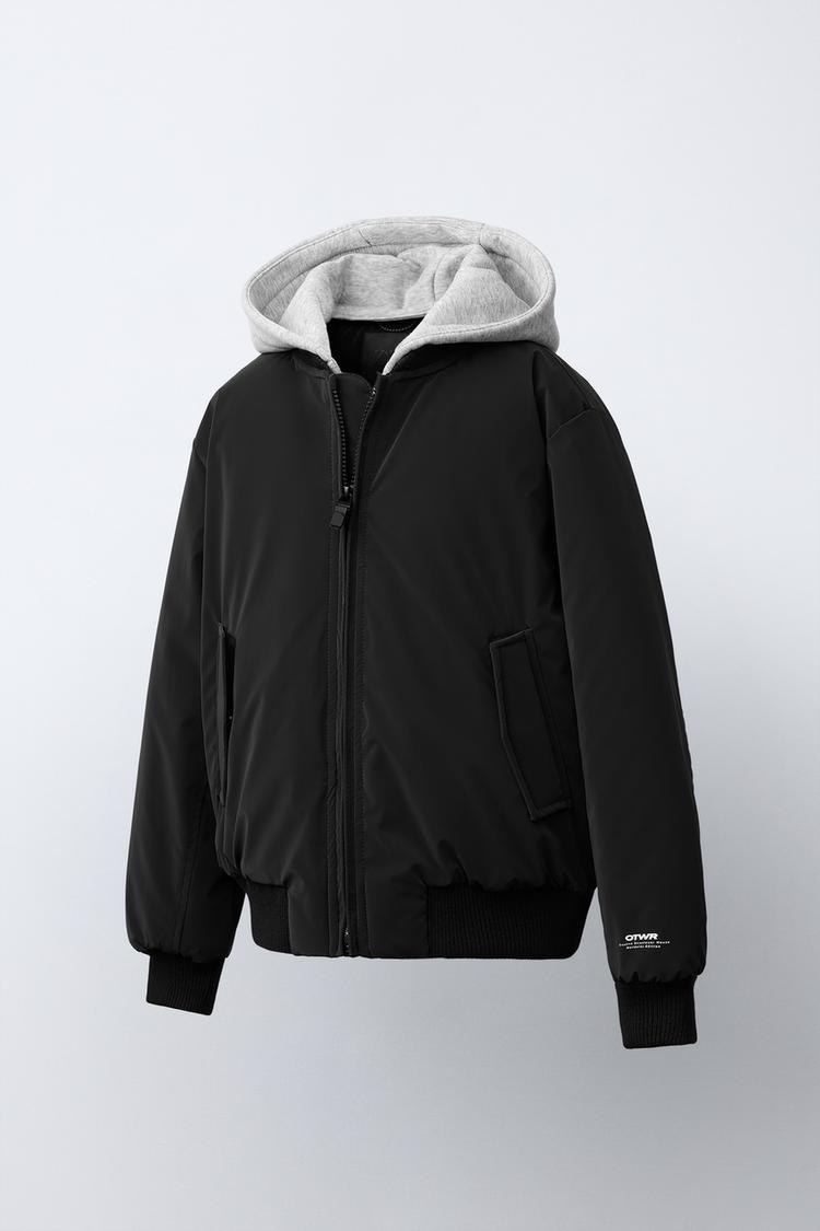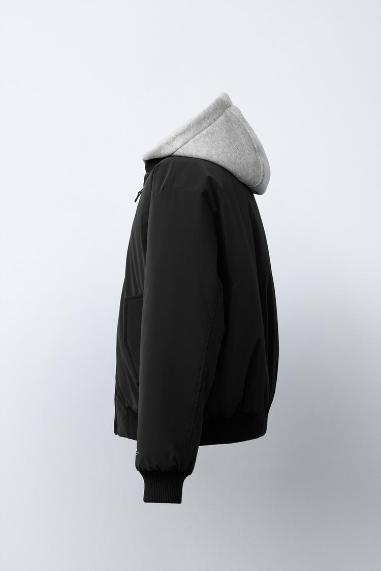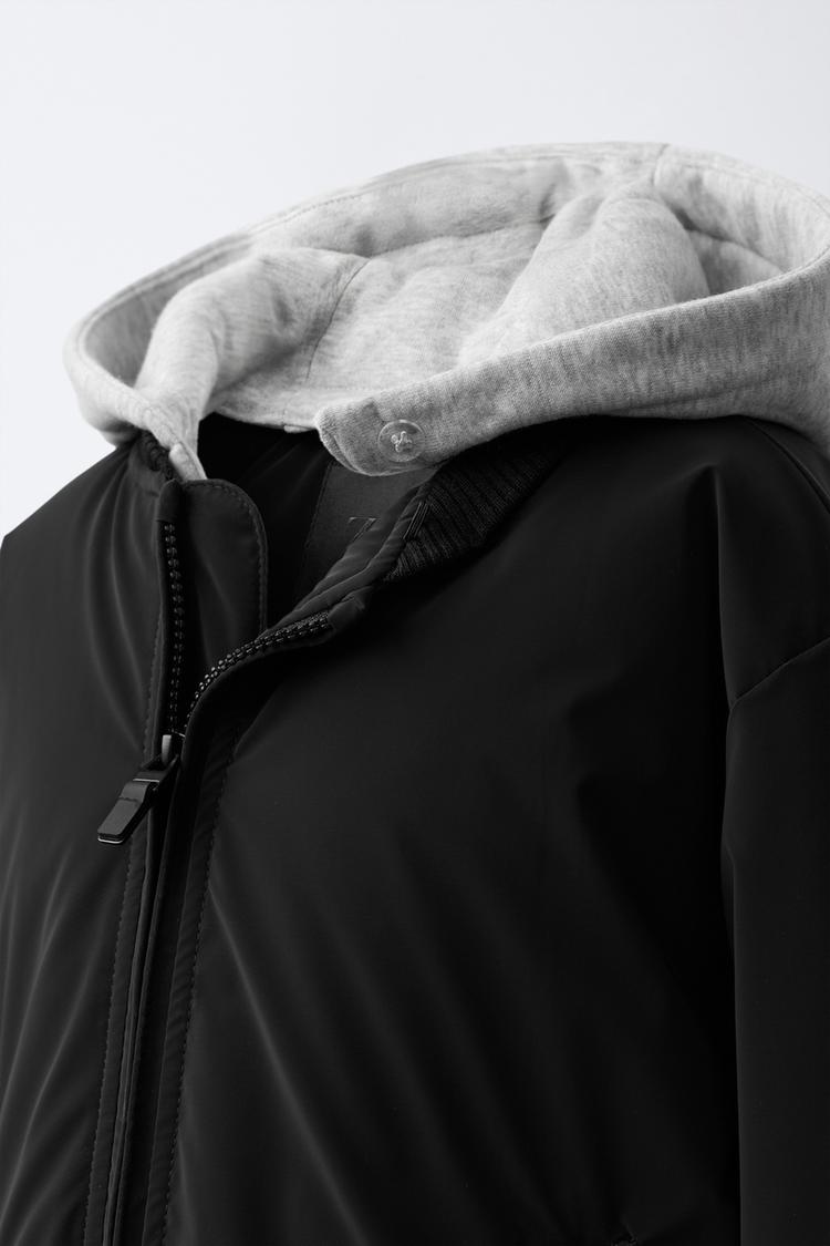 ZARA ПРОРЕЗИНЕННЫЙ БОМБЕР С ОТСТЕГИВАЮЩИМСЯ ФЛИСОВЫМ КАПЮШОНОМ, ЧЕРНЫЙ