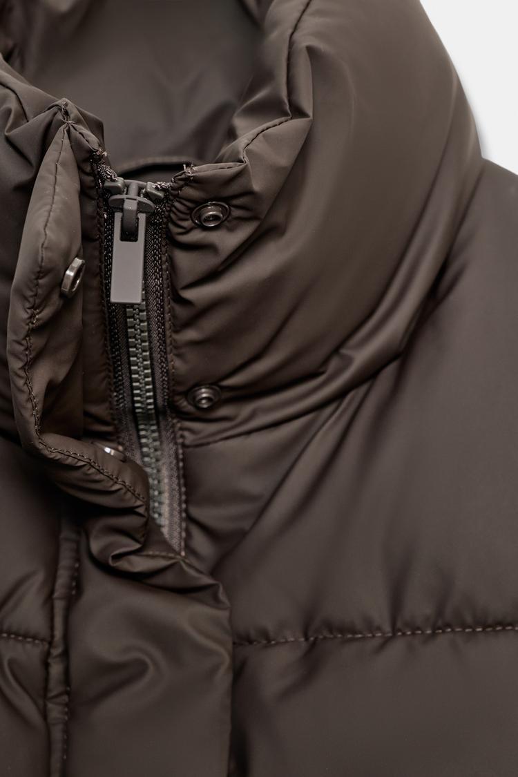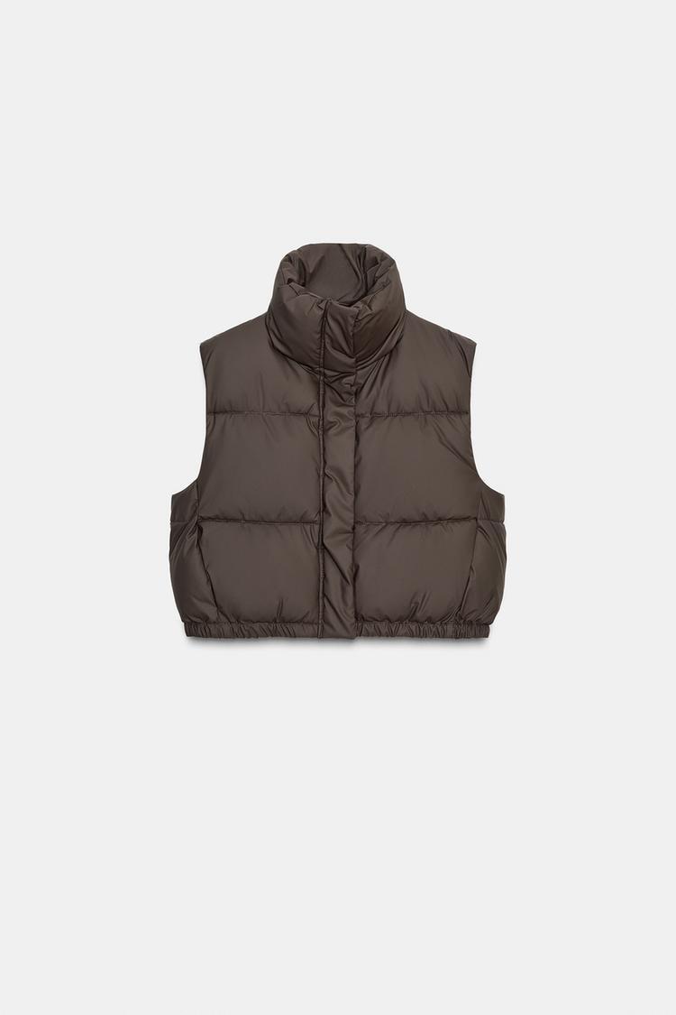 ZARA ПРОРЕЗИНЕННЫЙ СТЕГАНЫЙ ЖИЛЕТ, ТЕМНО-КОРИЧНЕВЫЙ