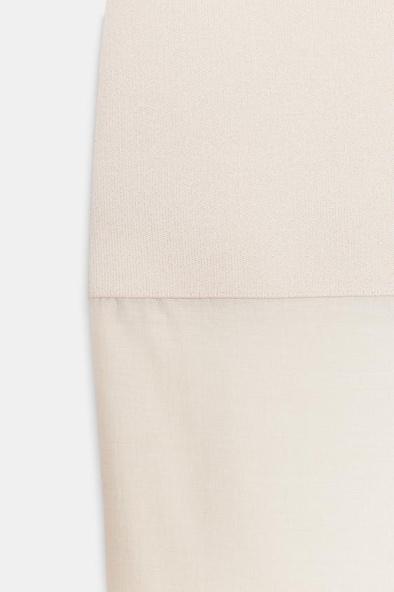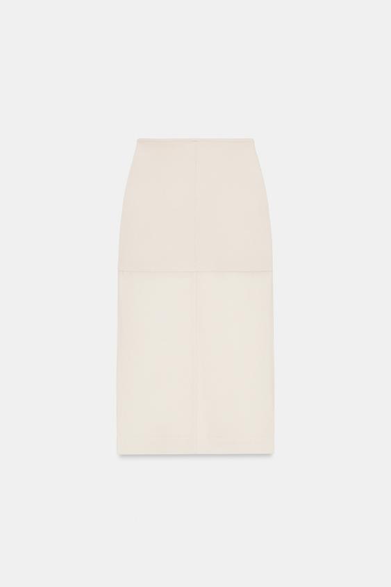 ZARA ПРЯМАЯ КОМБИНИРОВАННАЯ ТРИКОТАЖНАЯ ЮБКА, ЭКРЮ