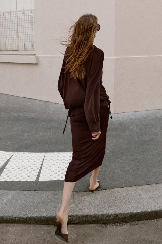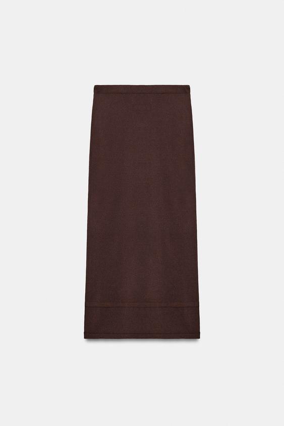 ZARA ПРЯМАЯ ТРИКОТАЖНАЯ ЮБКА, ШОКОЛАДНЫЙ