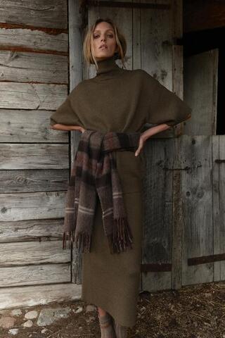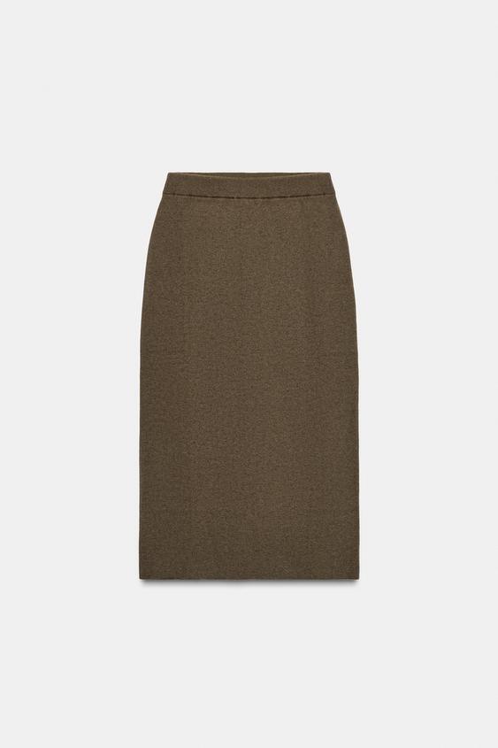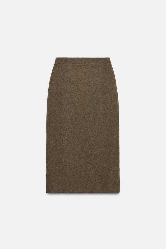 ZARA ПРЯМАЯ ЮБКА МИДИ ИЗ ШЕРСТИ, ХАКИ