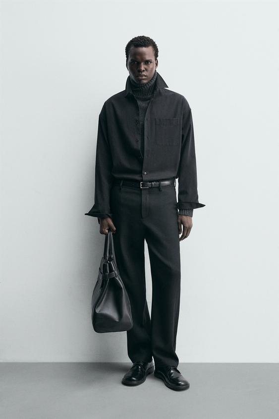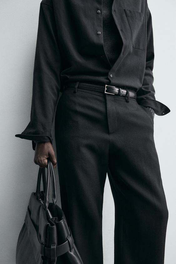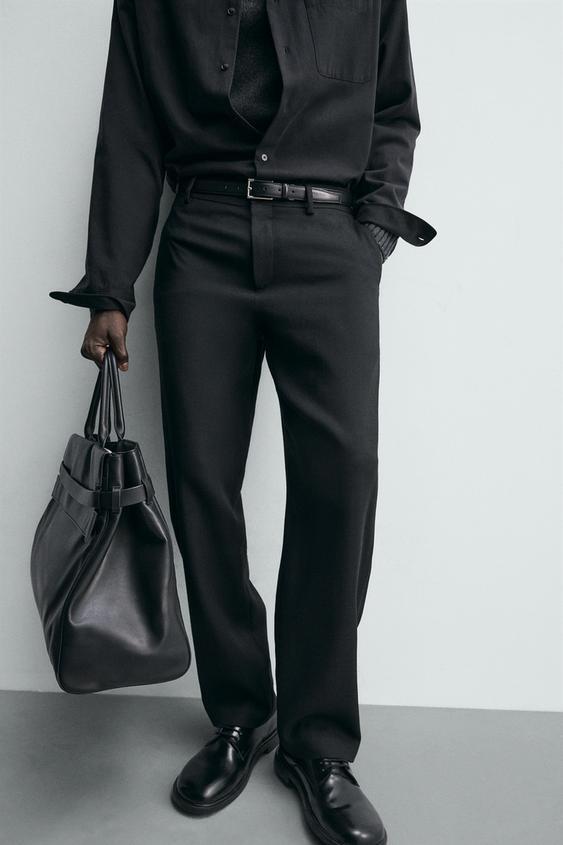 ZARA ПРЯМЫЕ БРЮКИ ИЗ 100% ШЕРСТИ, ЧЕРНЫЙ