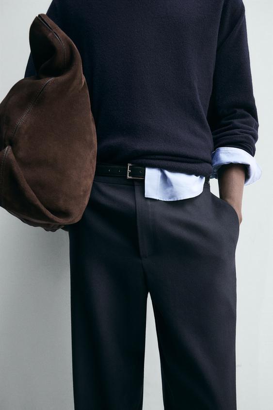 ZARA ПРЯМЫЕ БРЮКИ ИЗ 100% ШЕРСТИ, МОРСКОЙ СИНИЙ