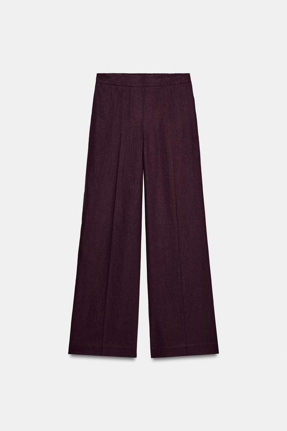 ZARA ПРЯМЫЕ БРЮКИ ИЗ ЛЬНА, БАКЛАЖАННЫЙ
