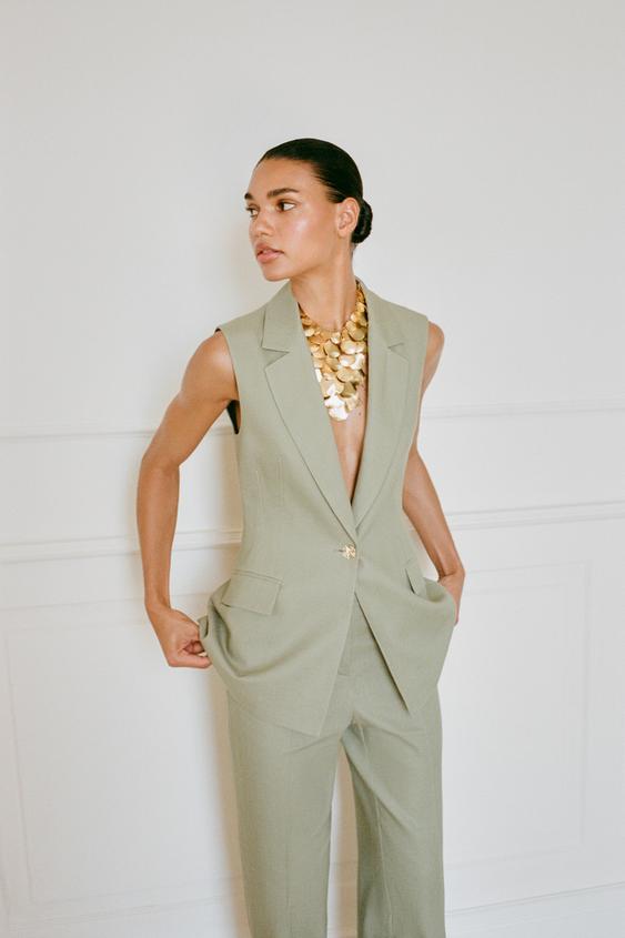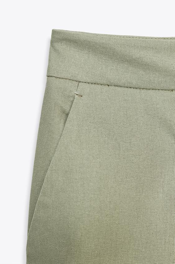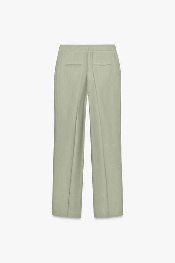 ZARA ПРЯМЫЕ БРЮКИ ИЗ ЛЬНА, СВЕТЛЫЙ ХАКИ